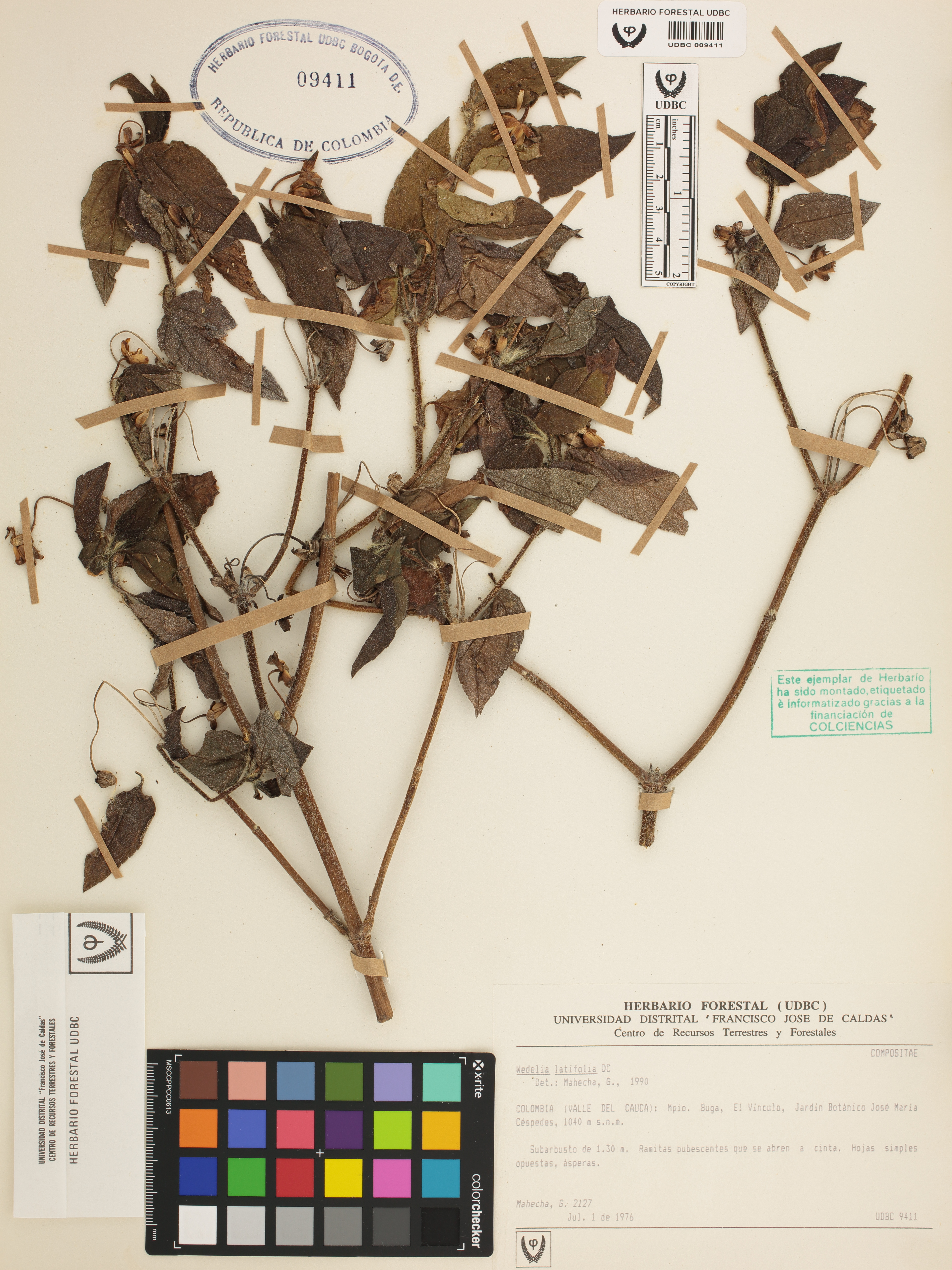 Fotografía del ejemplar Mahecha, G. 2127, determinado como Wedelia latifolia en el año 1990