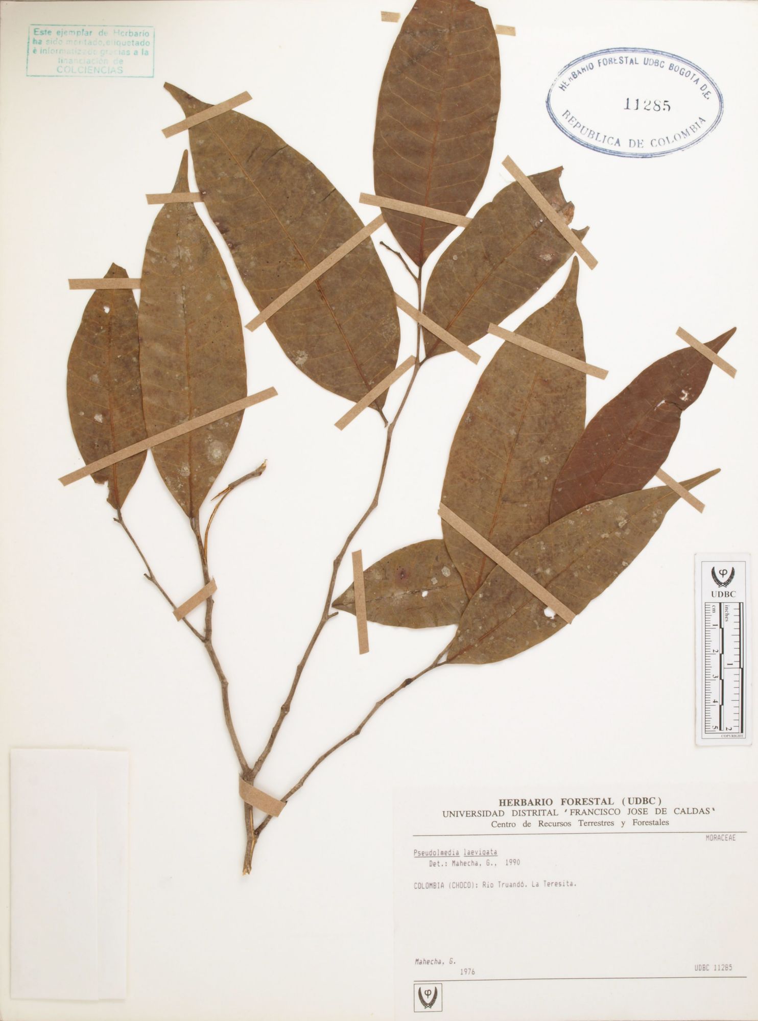 Fotografía del ejemplar Mahecha, G., determinado como Pseudolmedia laevigata en el año 1990