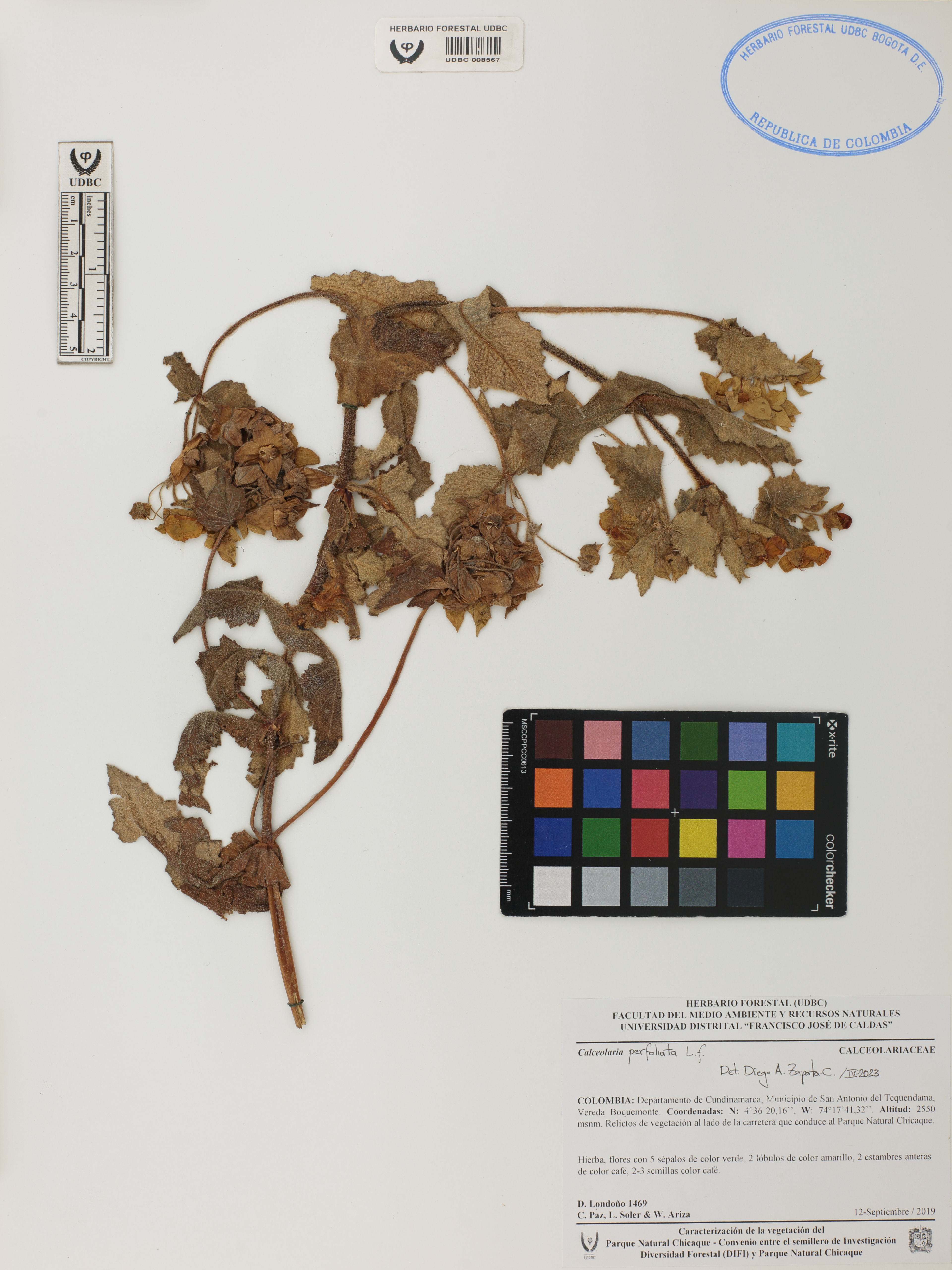 Fotografía del ejemplar Mahecha, G. 1469, determinado como Calceolaria perfoliata en el año 2023