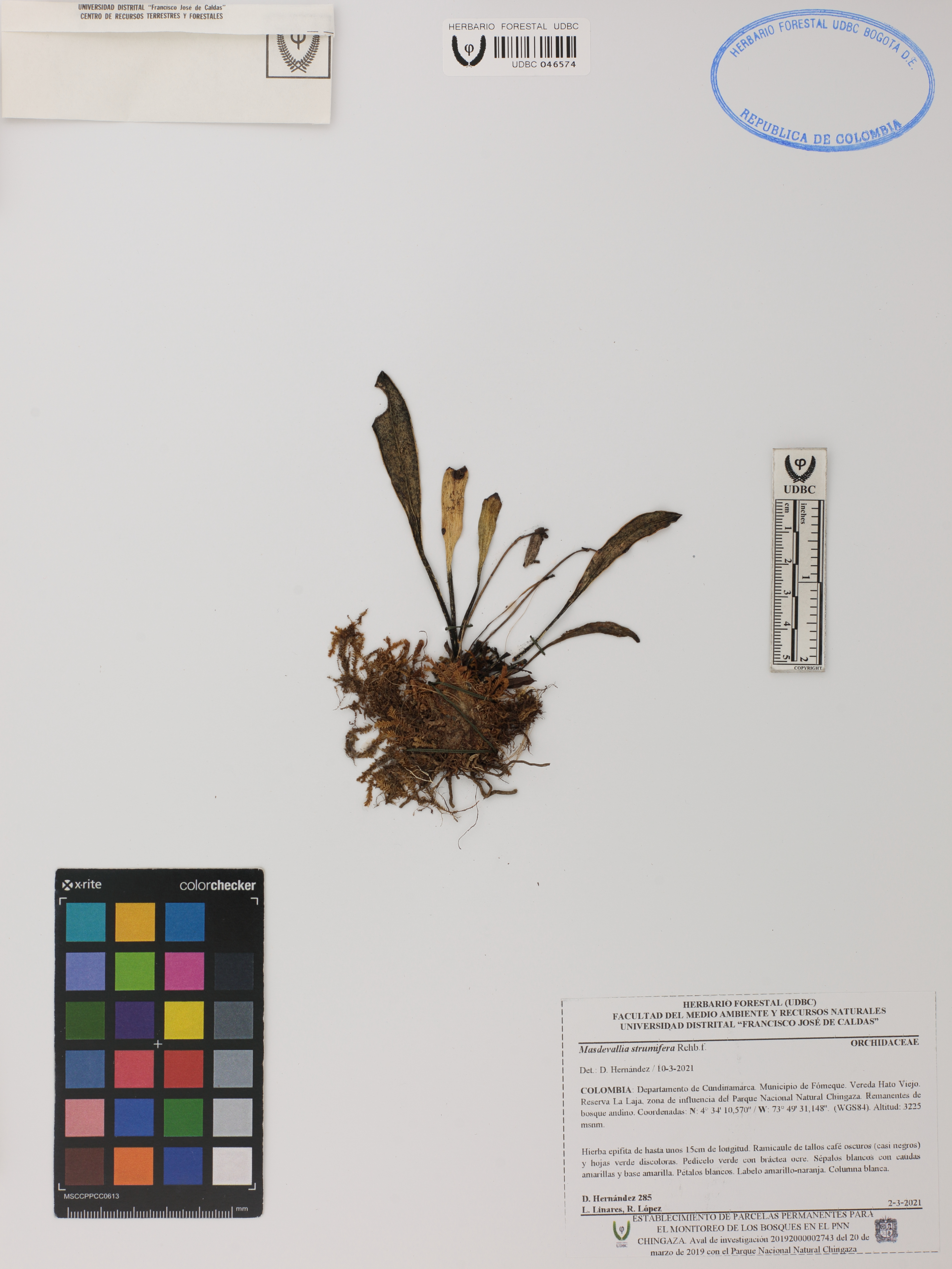 Fotografía del ejemplar Hernández, H. 285, determinado como Masdevallia strumifera en el año 2021