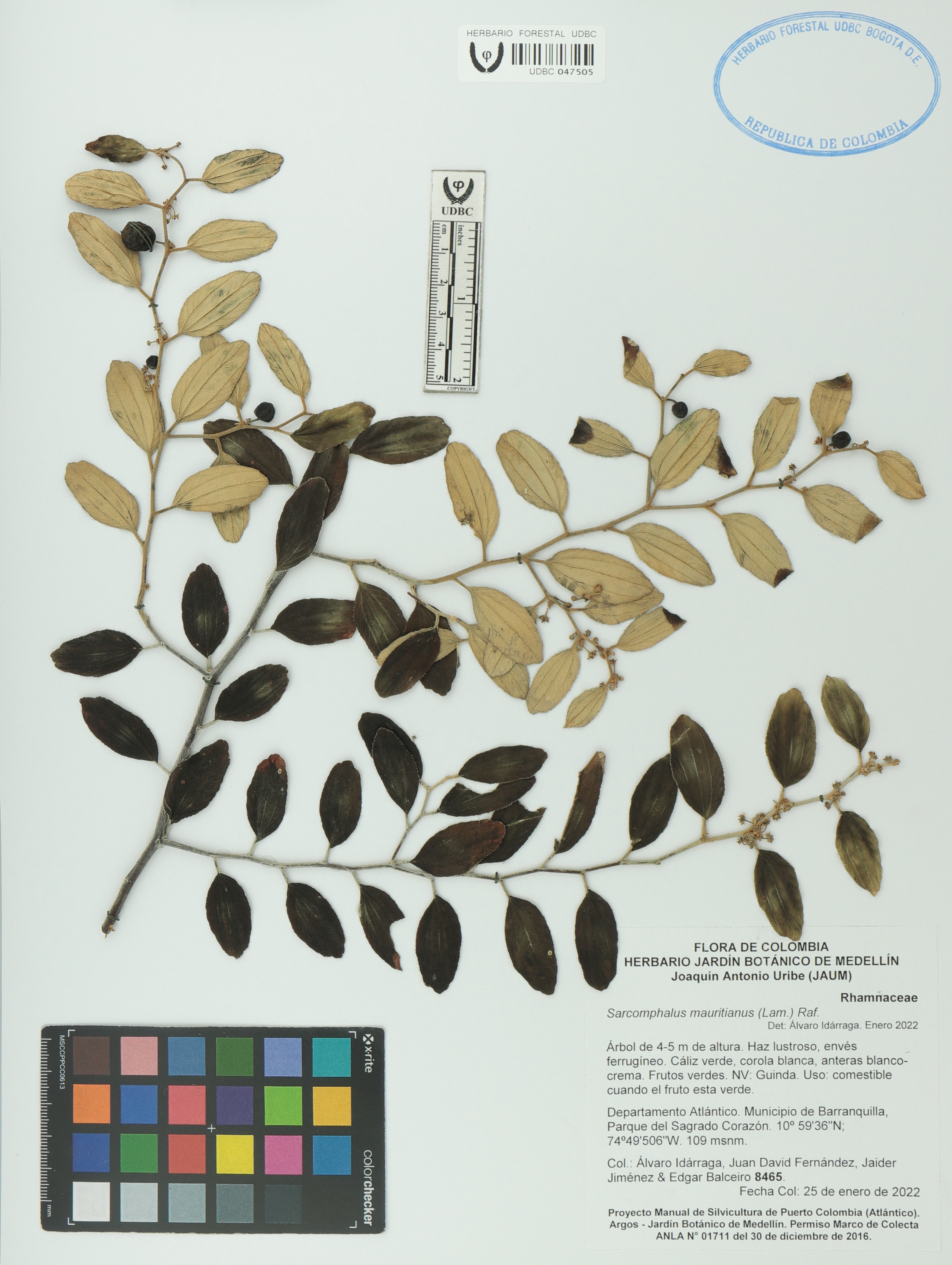 Fotografía del ejemplar Idárraga, Á. 8465, determinado como Sarcomphalus mauritianus en el año 2022