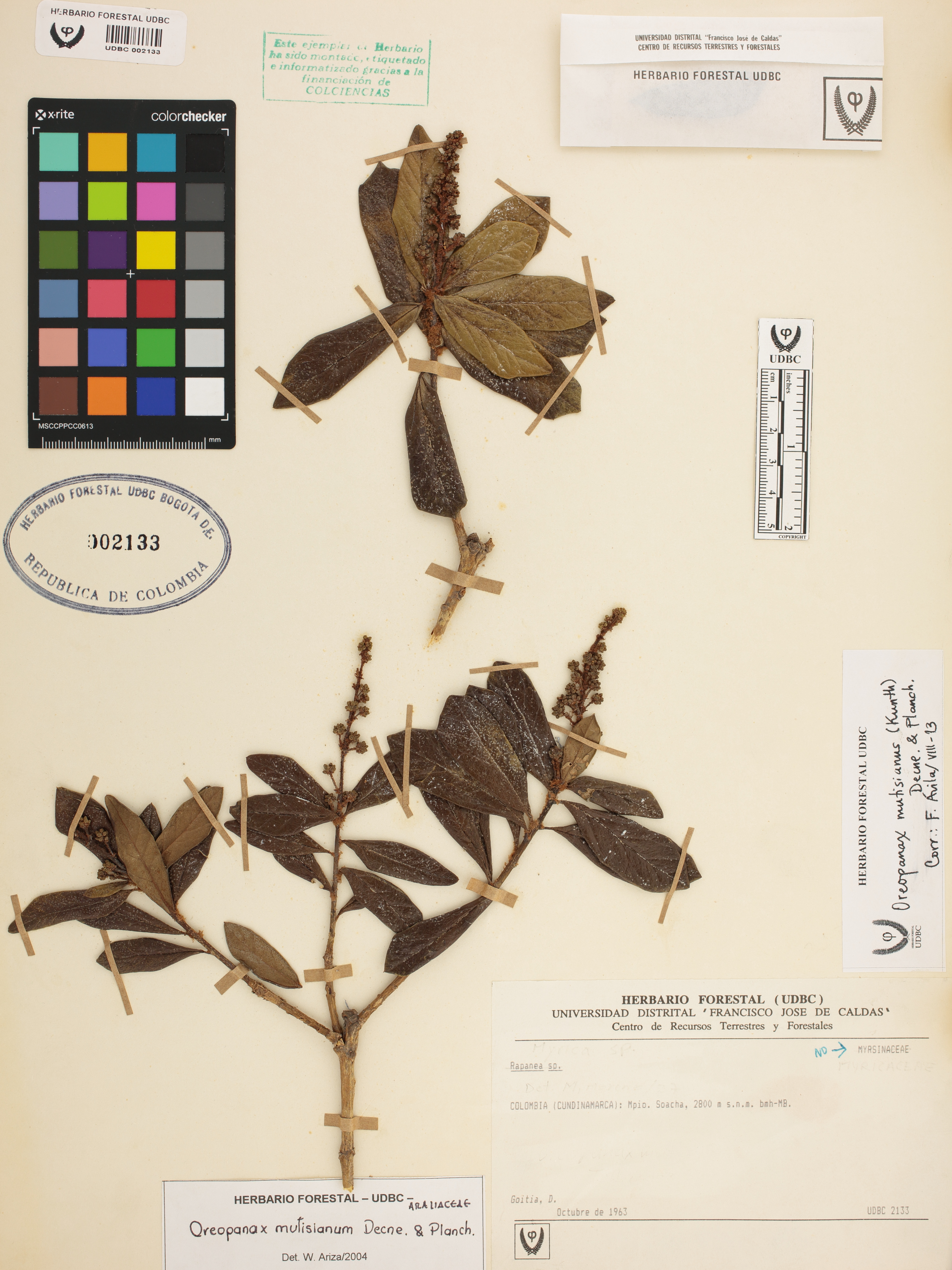 Fotografía del ejemplar Goitia, D., determinado como Oreopanax mutisianus en el año 2008