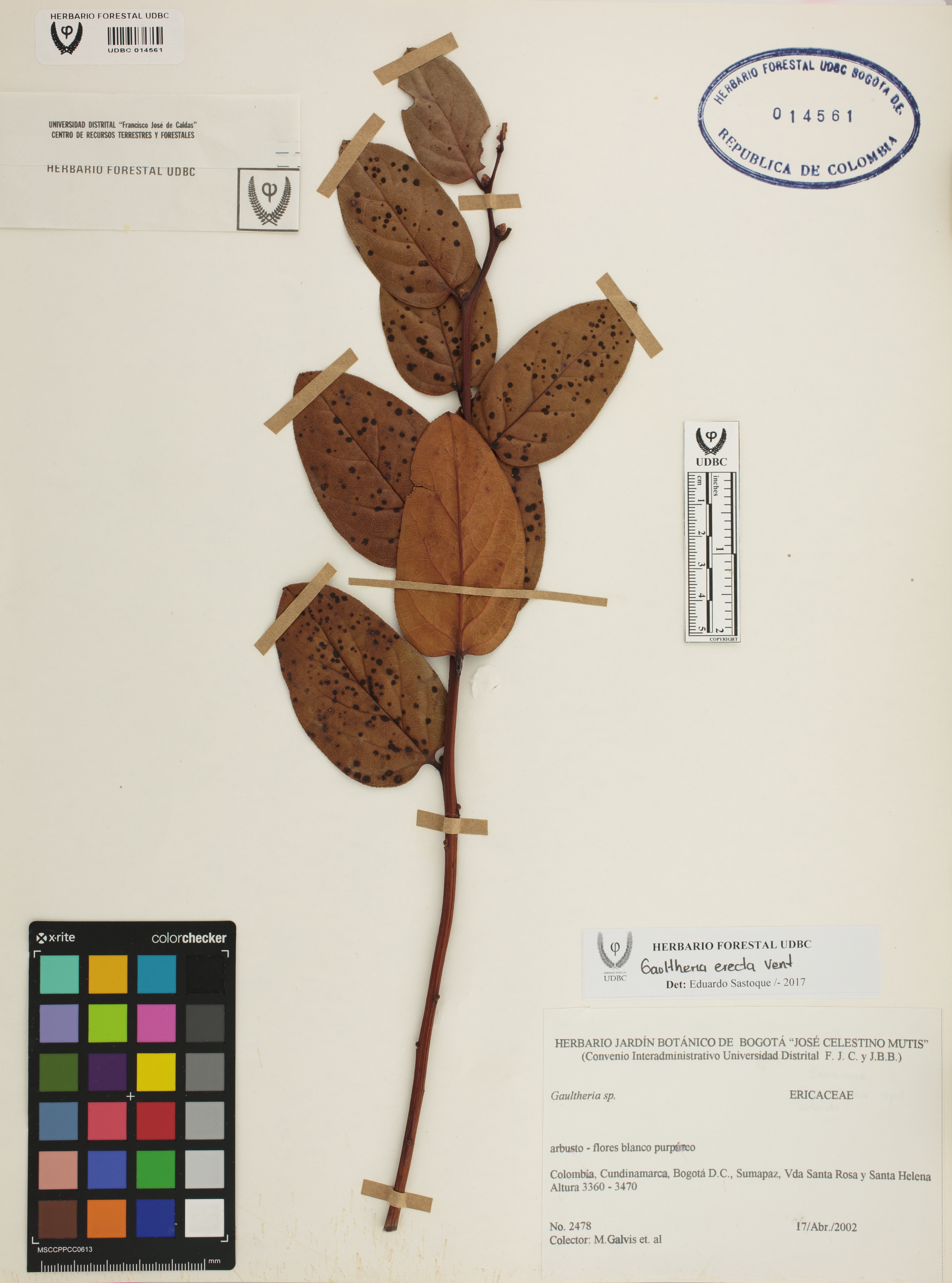 | dc.description | Fotografía del ejemplar Galvis, M. 2478, determinado como Gaultheria erecta en el año 2017 | |