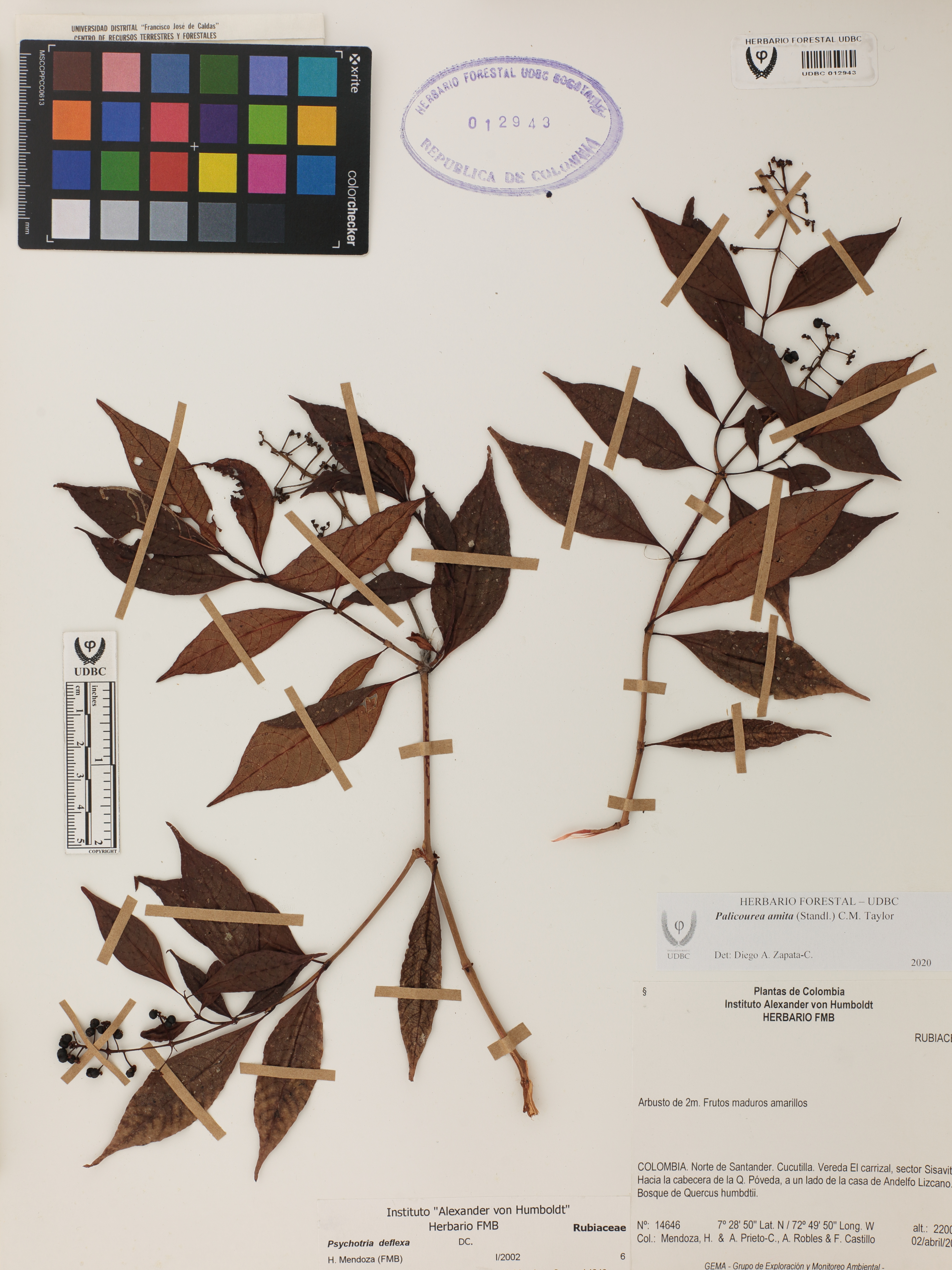 Fotografía del ejemplar Mendoza, H. 14646, determinado como Palicourea amita en el año 2020