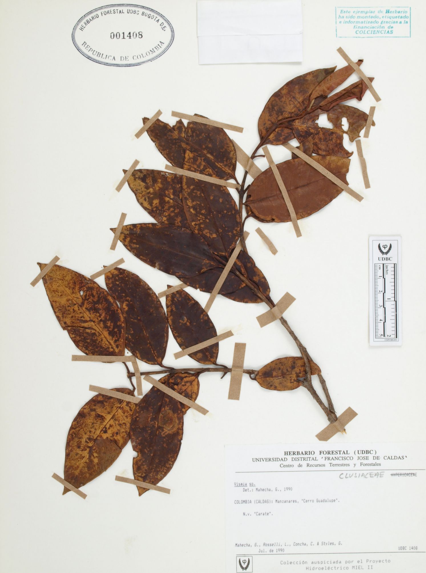 Fotografía del ejemplar Mahecha, G., determinado como Vismia sp. en el año 1990