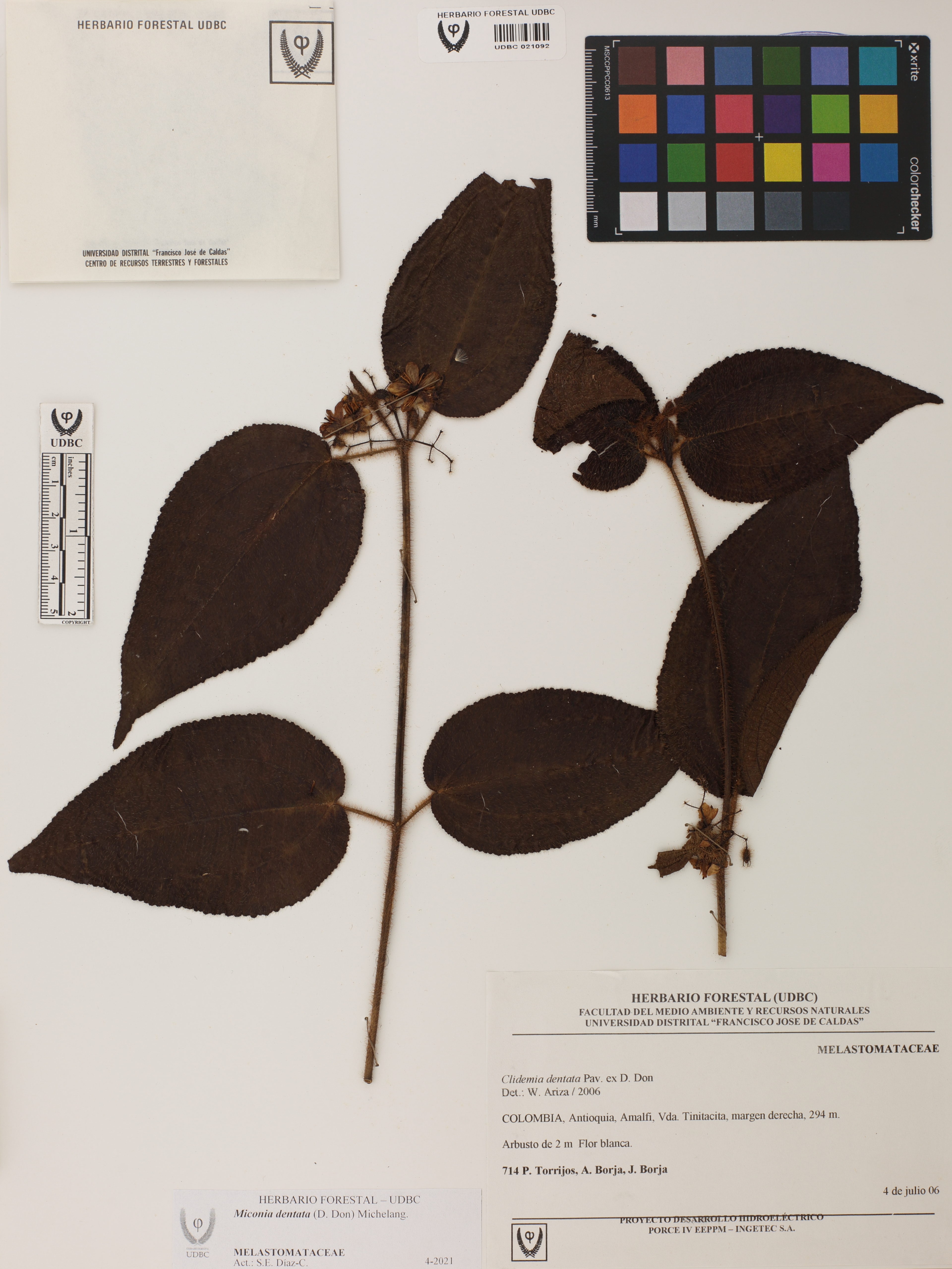 Fotografía del ejemplar Torrijos, P. 714, determinado como Miconia dentata en el año 2006