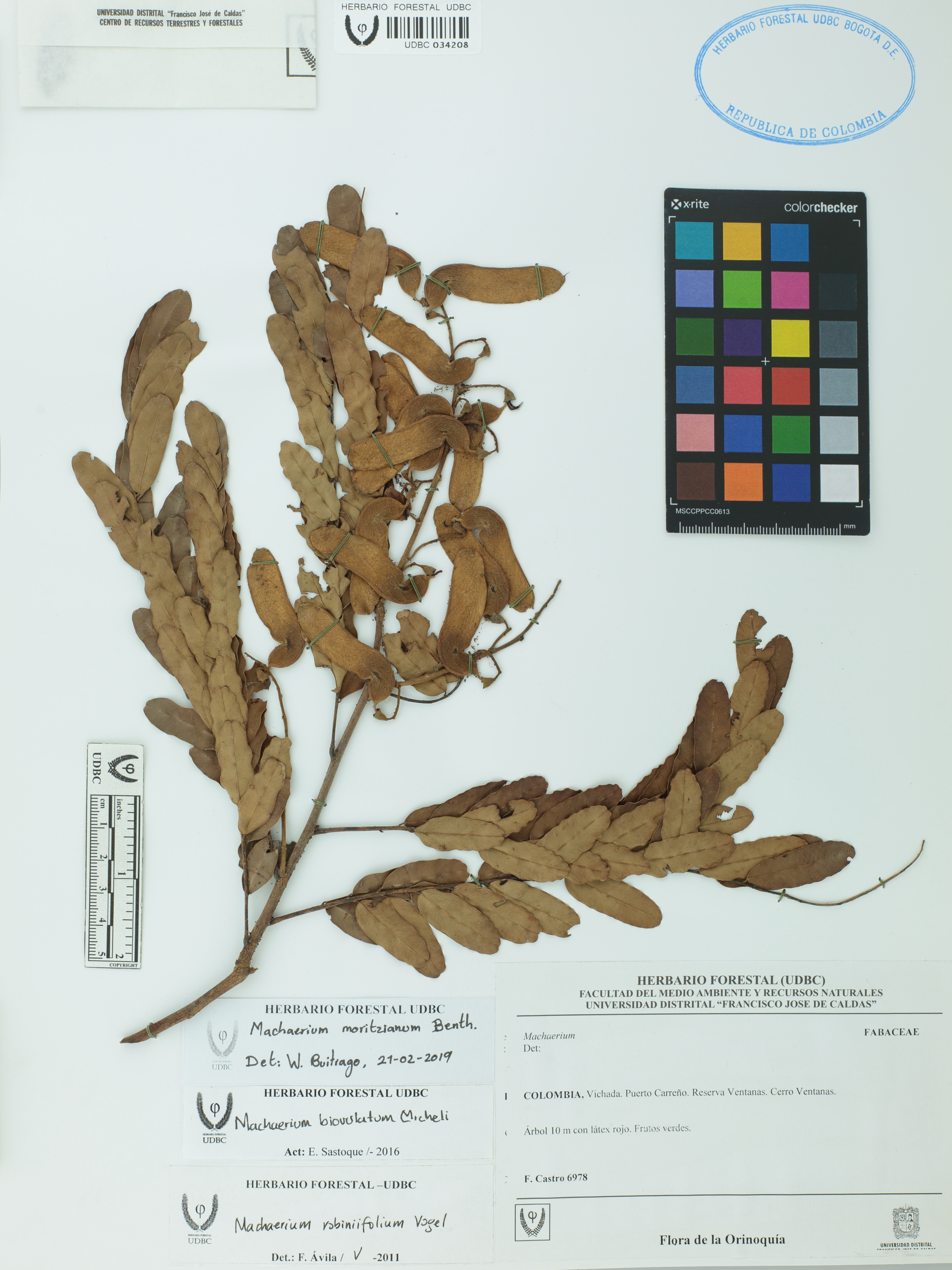 | dc.description | Fotografía del ejemplar Castro, F. 6978, determinado como Machaerium moritzianum en el año 2019 | |
