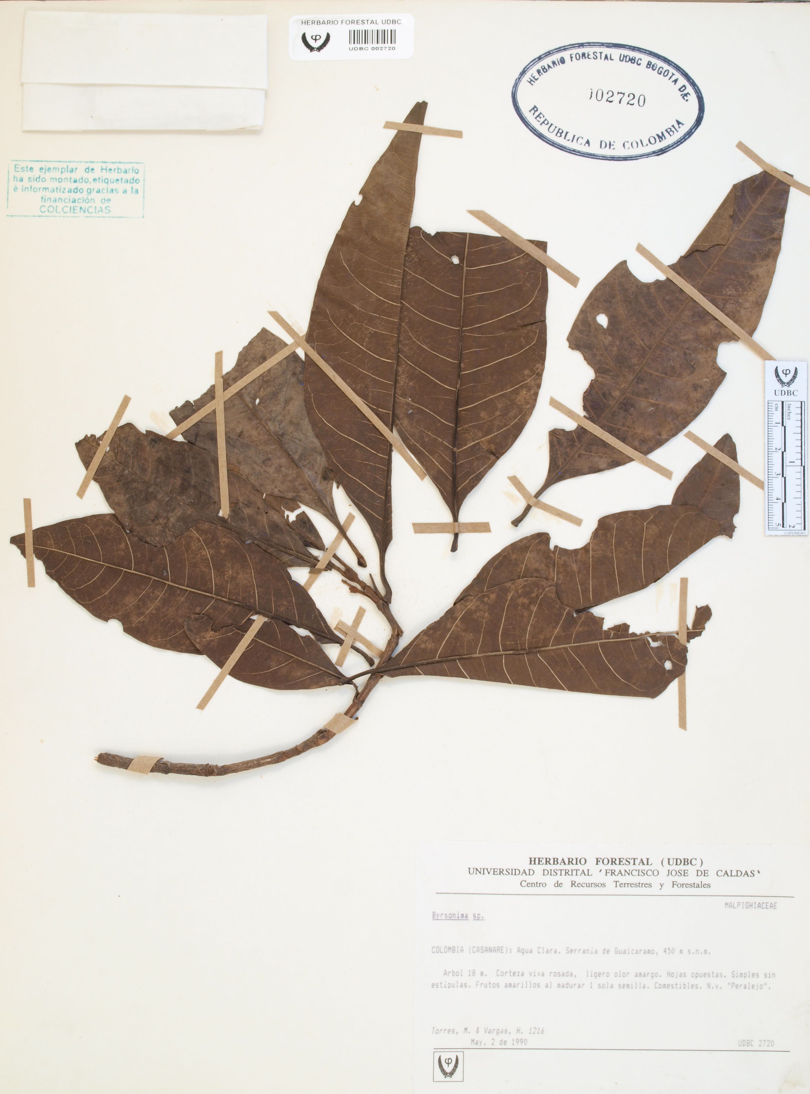 Fotografía del ejemplar Torres, M. 1216, determinado como Byrsonima sp.