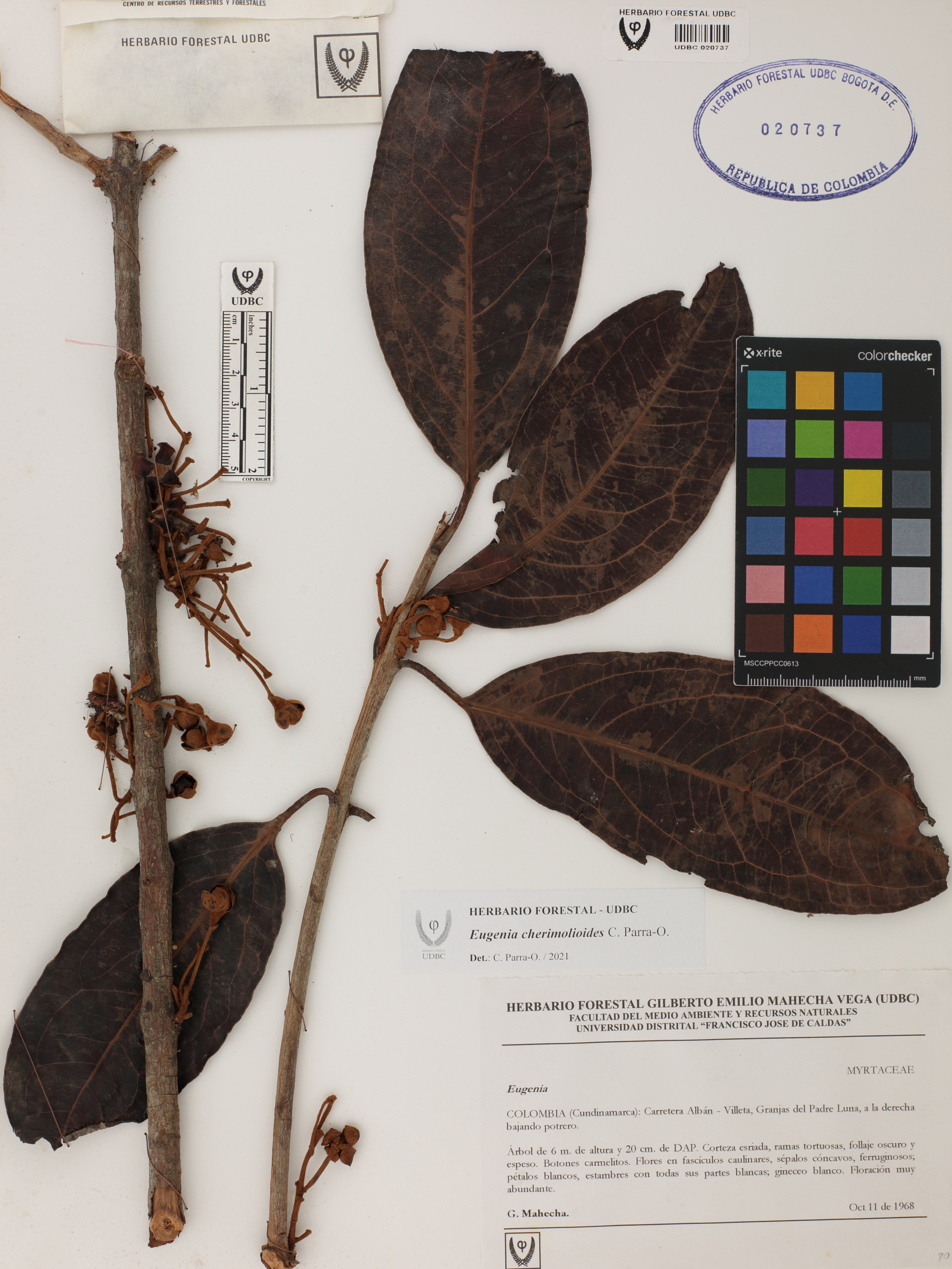 Fotografía del ejemplar Mahecha, G., determinado como Eugenia cherimolioides en el año 2021