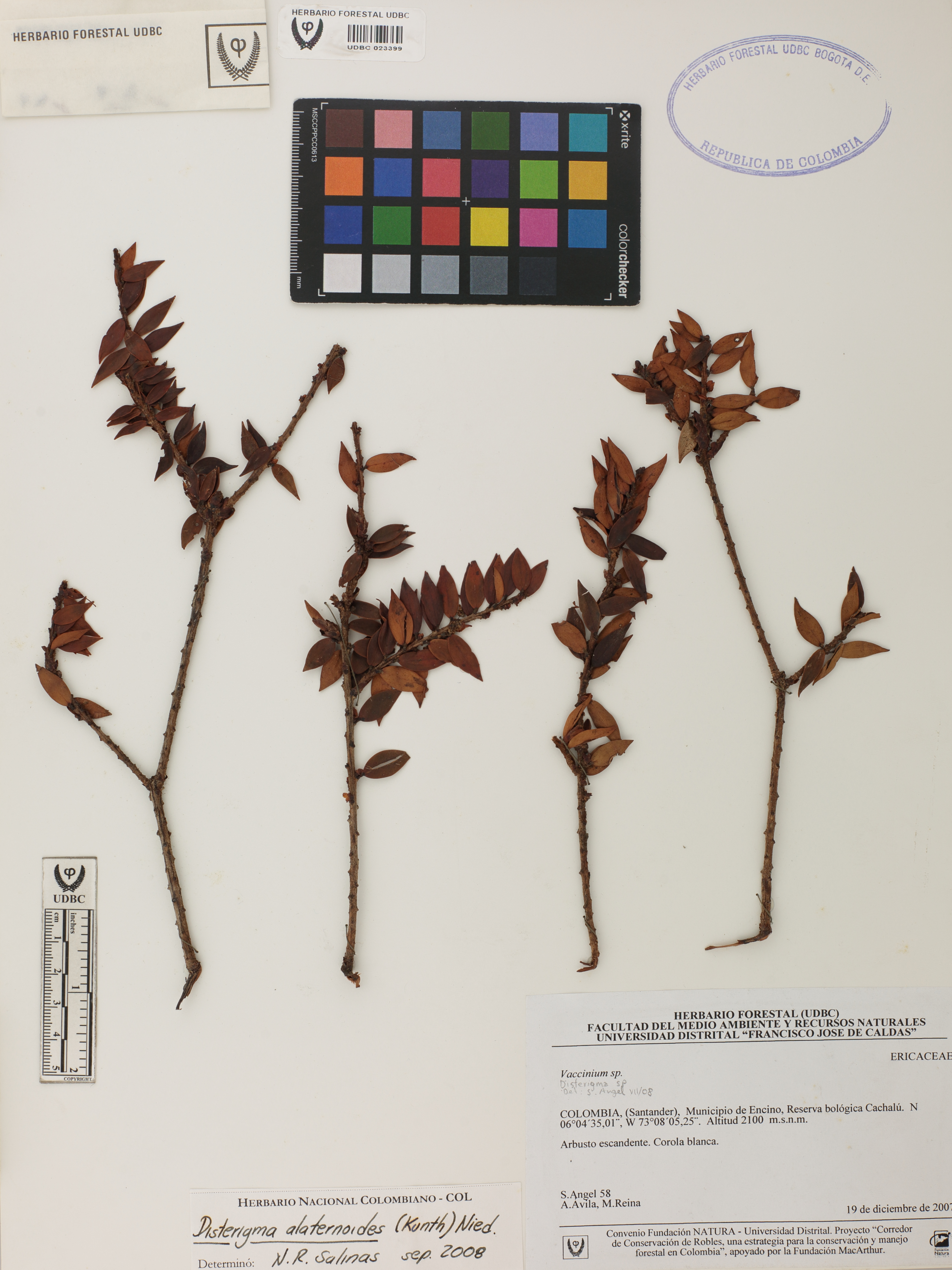 Fotografía del ejemplar Ángel, S. 58, determinado como Disterigma alaternoides en el año 2008