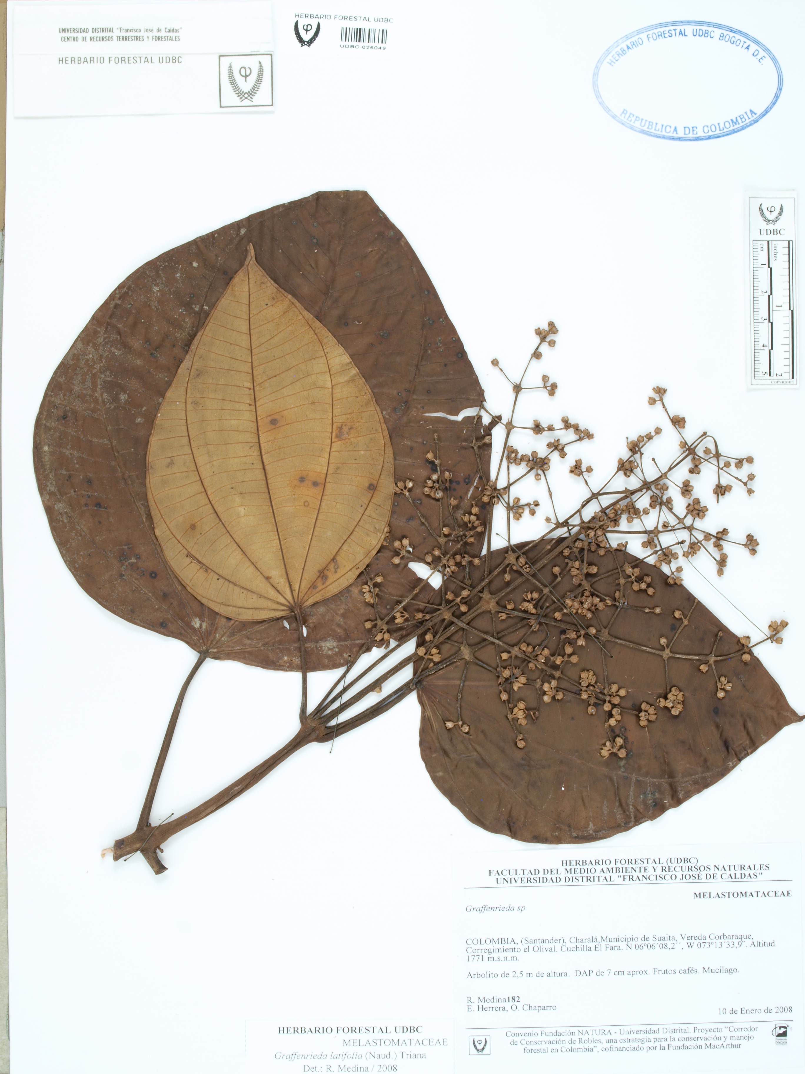 Fotografía del ejemplar Medina, R. 182, determinado como Graffenrieda latifolia en el año 2008