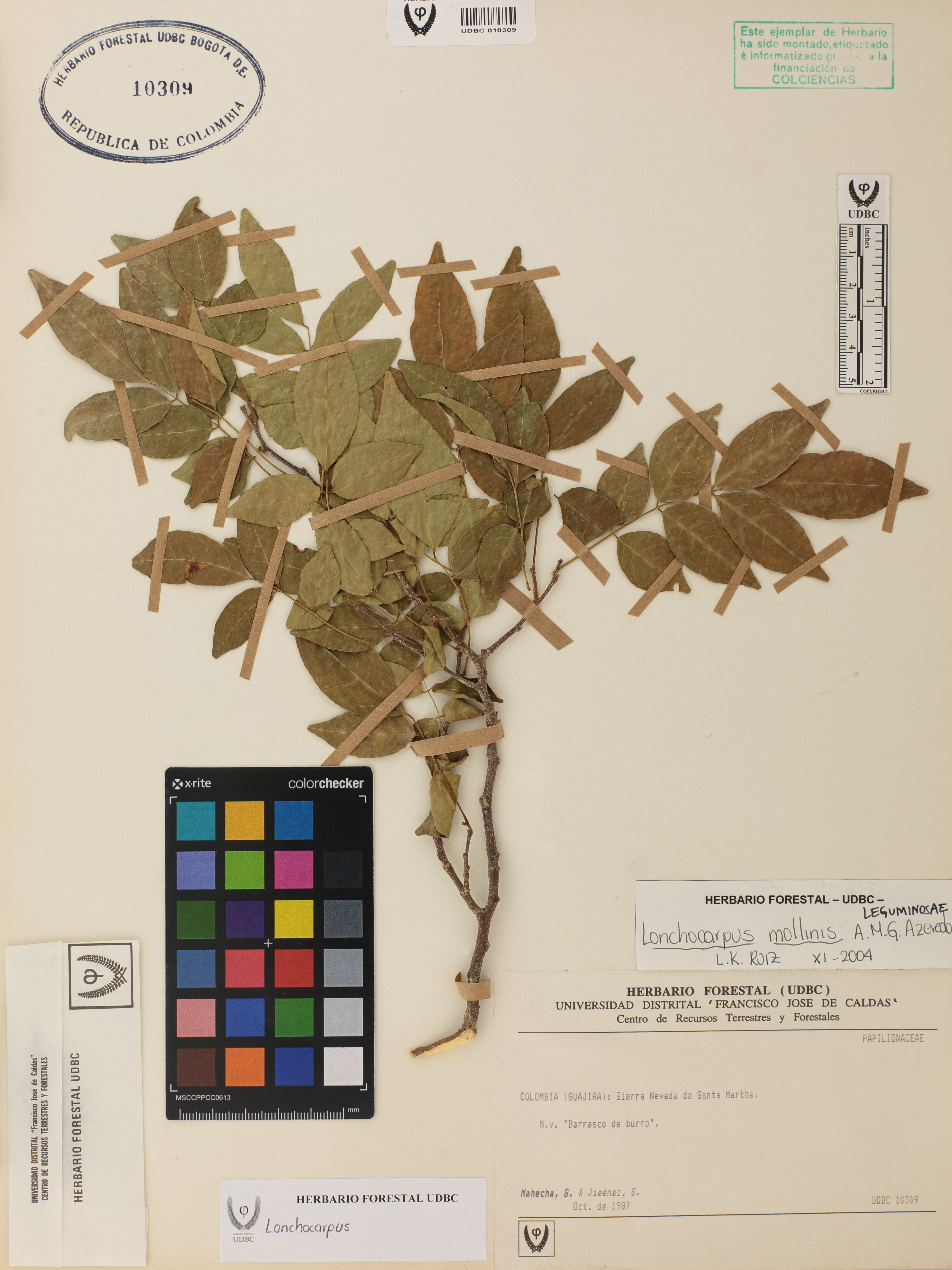 Fotografía del ejemplar Mahecha, G., determinado como Lonchocarpus sp. en el año 2021