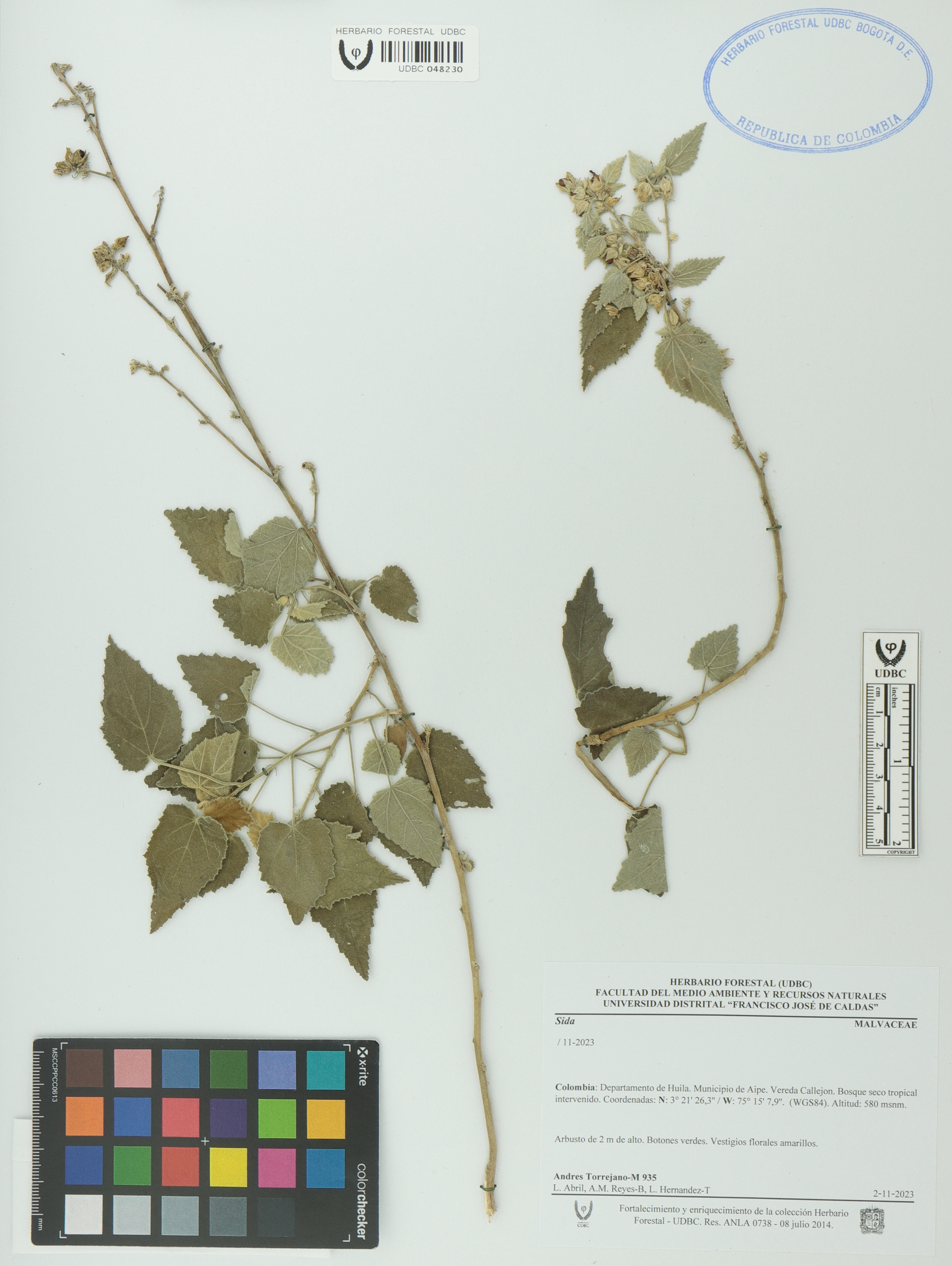 Fotografía del ejemplar Torrejano-M., A. 935, determinado como Sida sp.