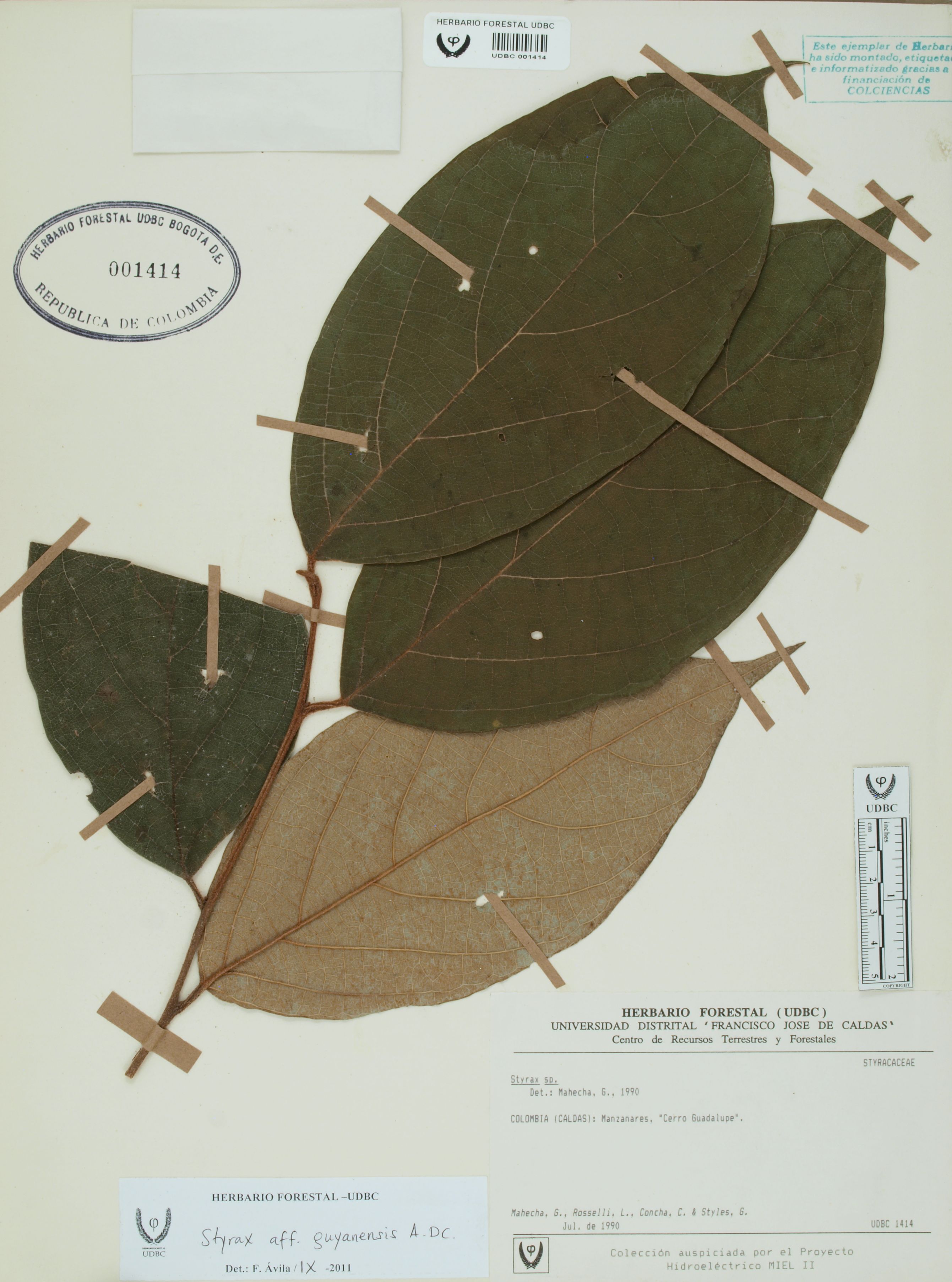 Fotografía del ejemplar Mahecha, G., determinado como Styrax guyanensis en el año 2011