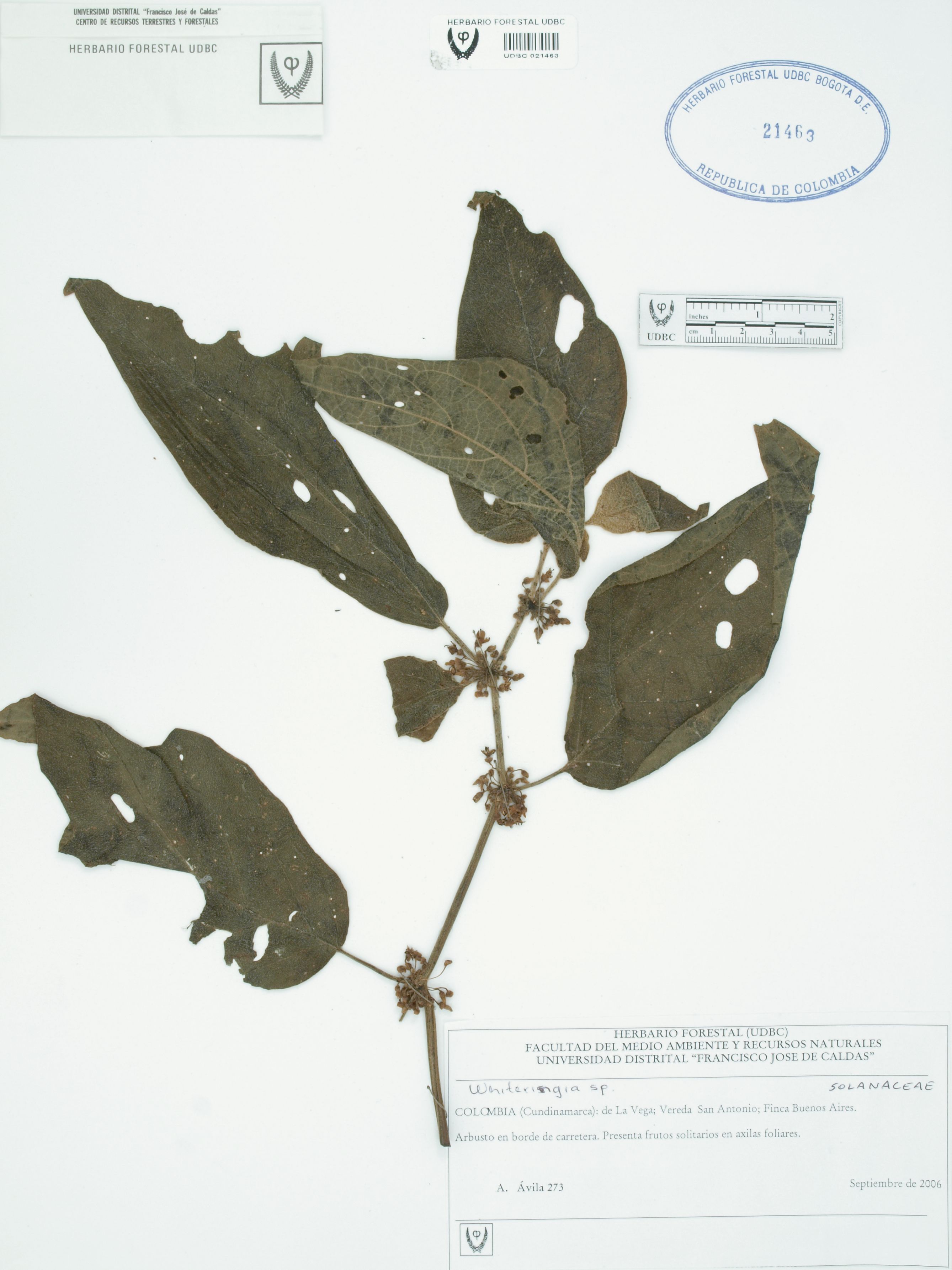 Fotografía del ejemplar Ávila, F. 273, determinado como Witheringia sp.