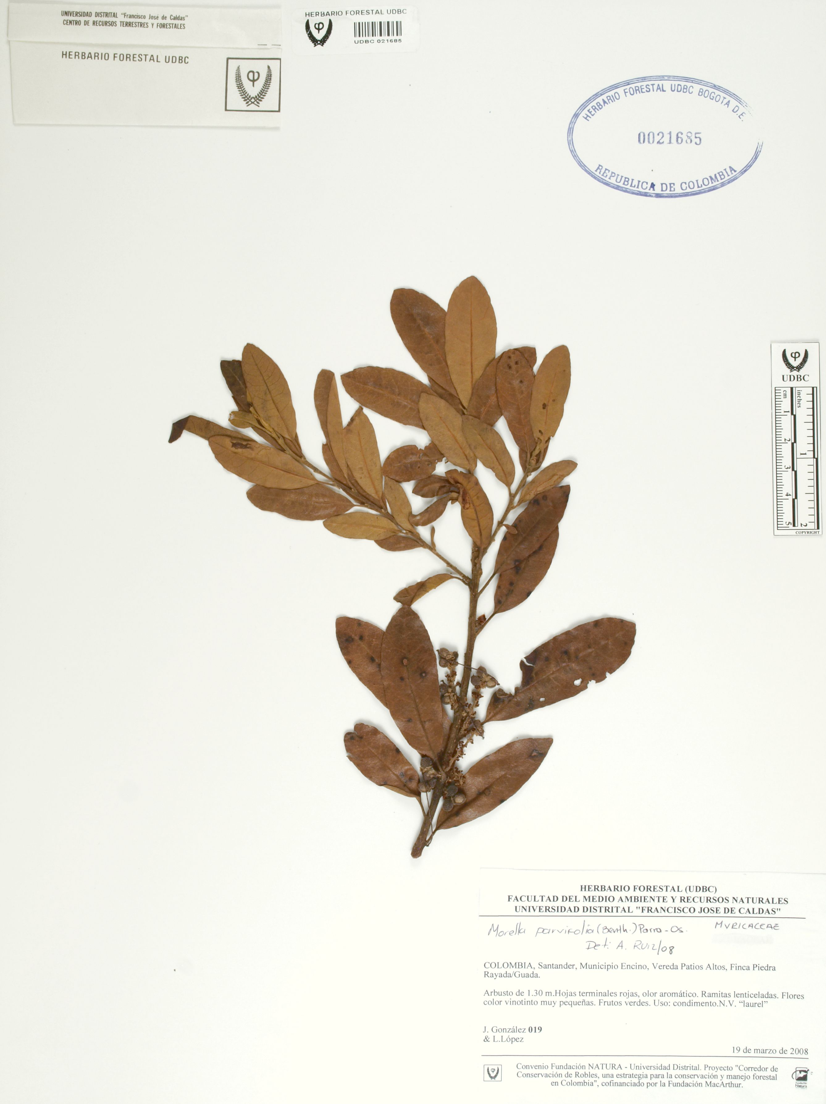 Fotografía del ejemplar González, J. 19, determinado como Morella parvifolia en el año 2008