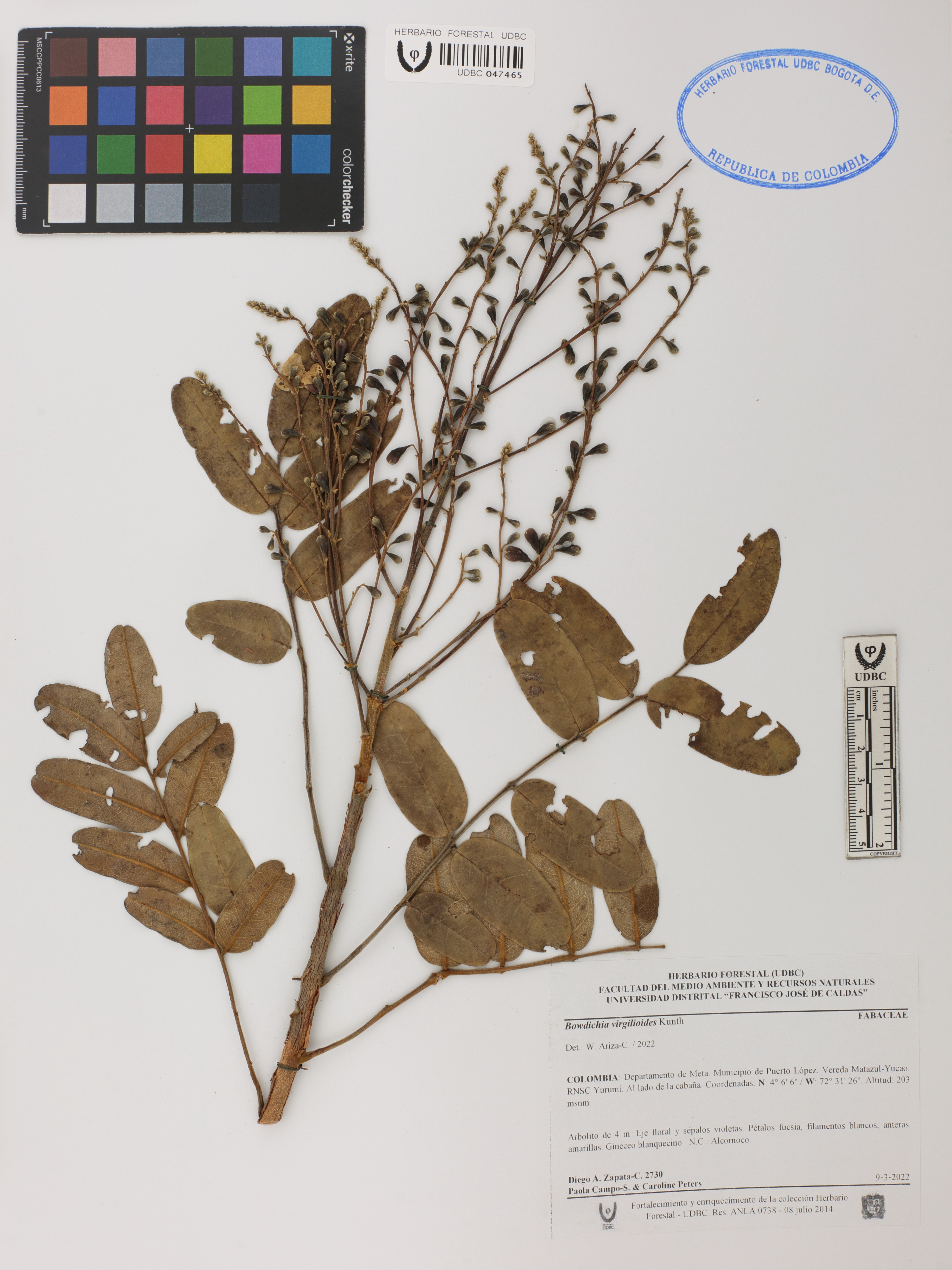 Fotografía del ejemplar Zapata-C., D. 2730, determinado como Bowdichia virgilioides en el año 2022