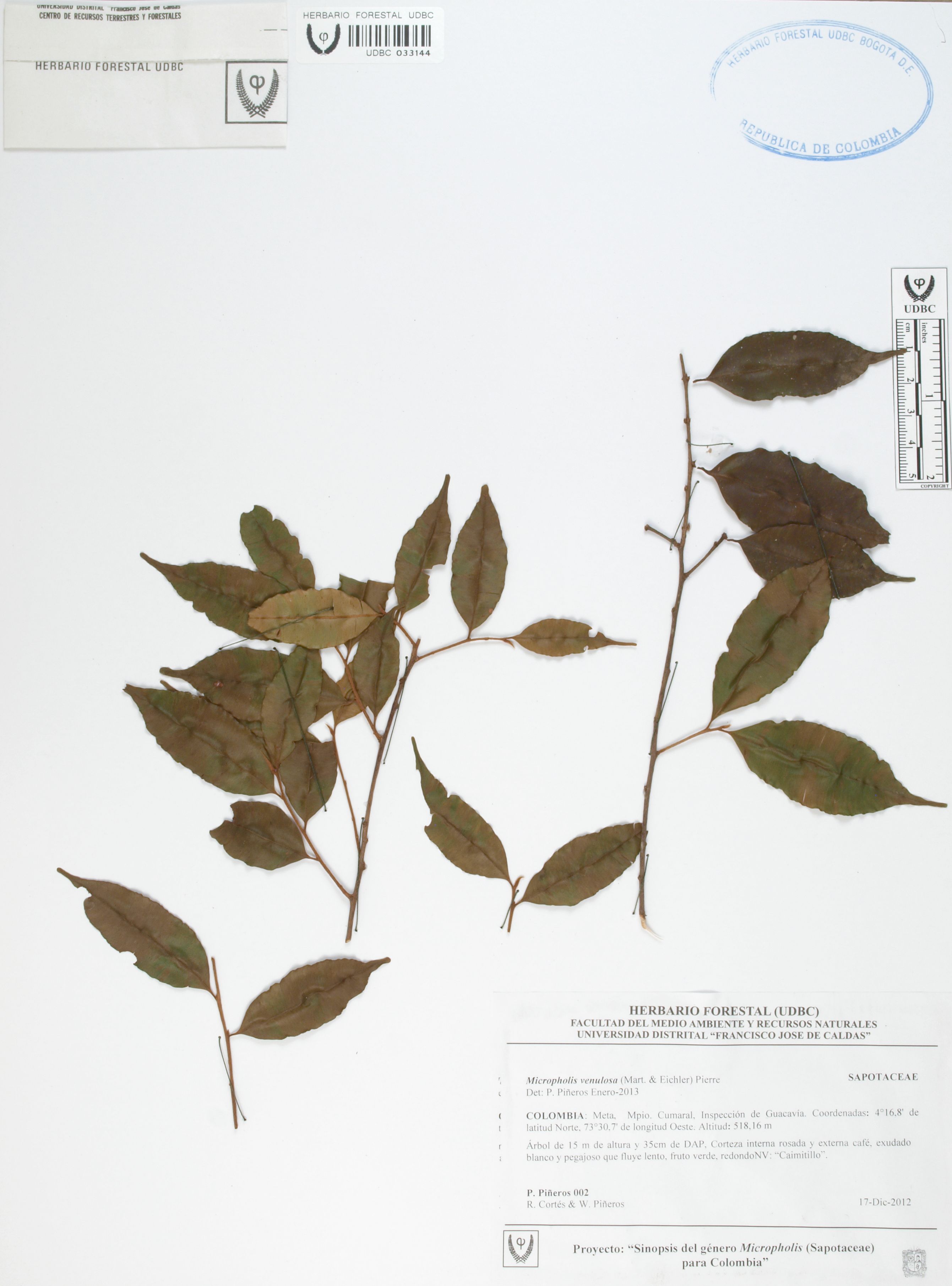 Fotografía del ejemplar Piñeros, P. 2, determinado como Micropholis venulosa en el año 2013