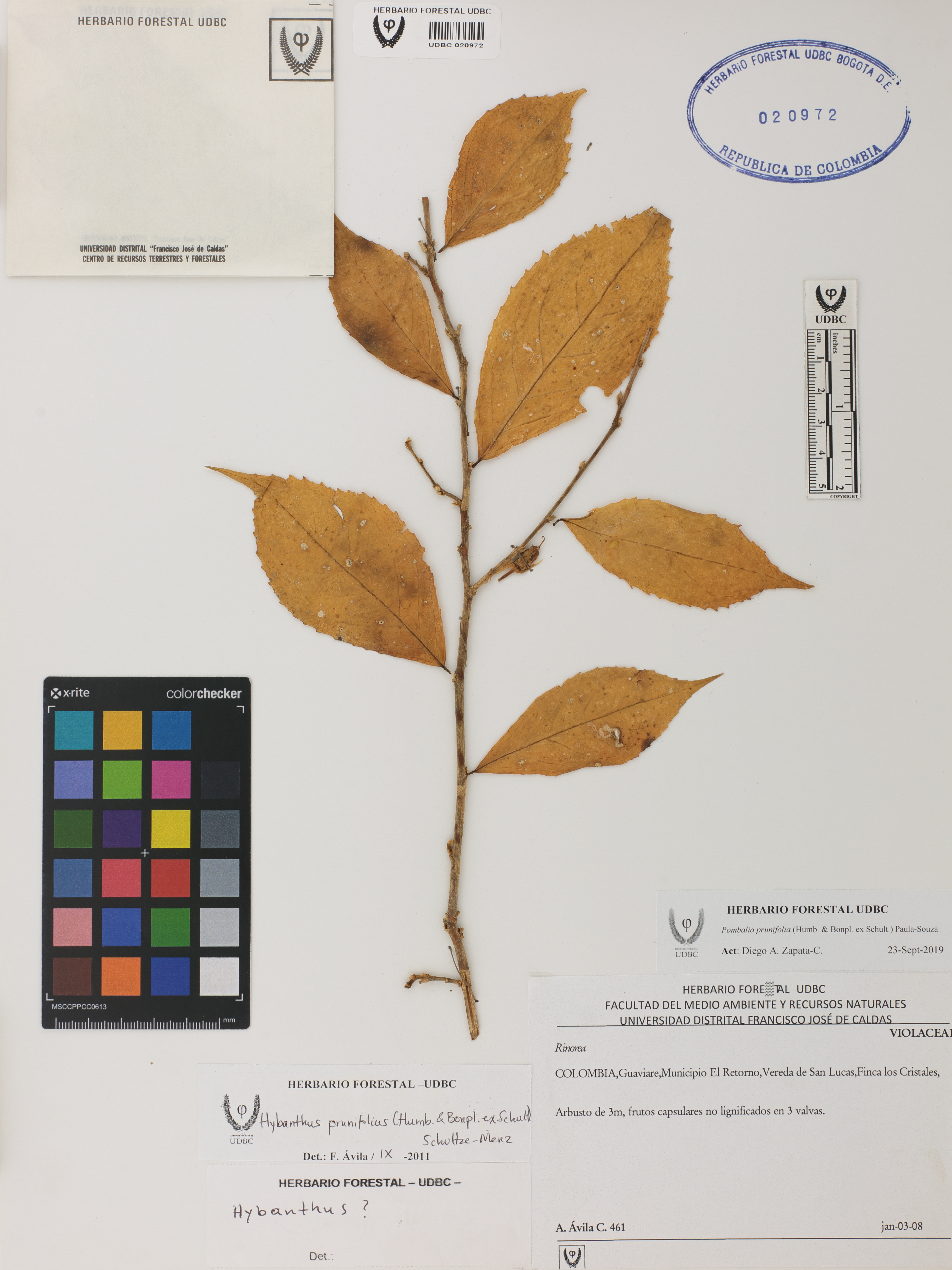 Fotografía del ejemplar Ávila, F. 461, determinado como Pombalia prunifolia en el año 2011