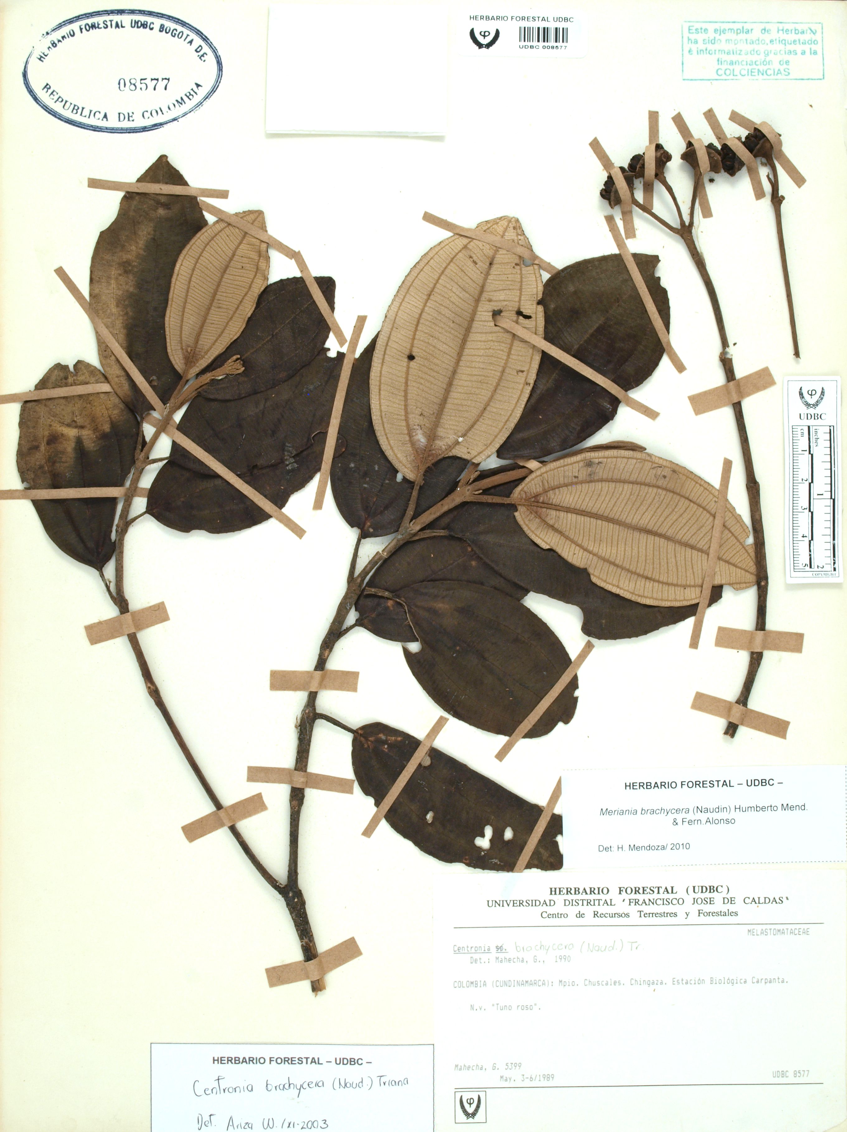 Fotografía del ejemplar Mahecha, G. 5399, determinado como Meriania brachycera en el año 2010