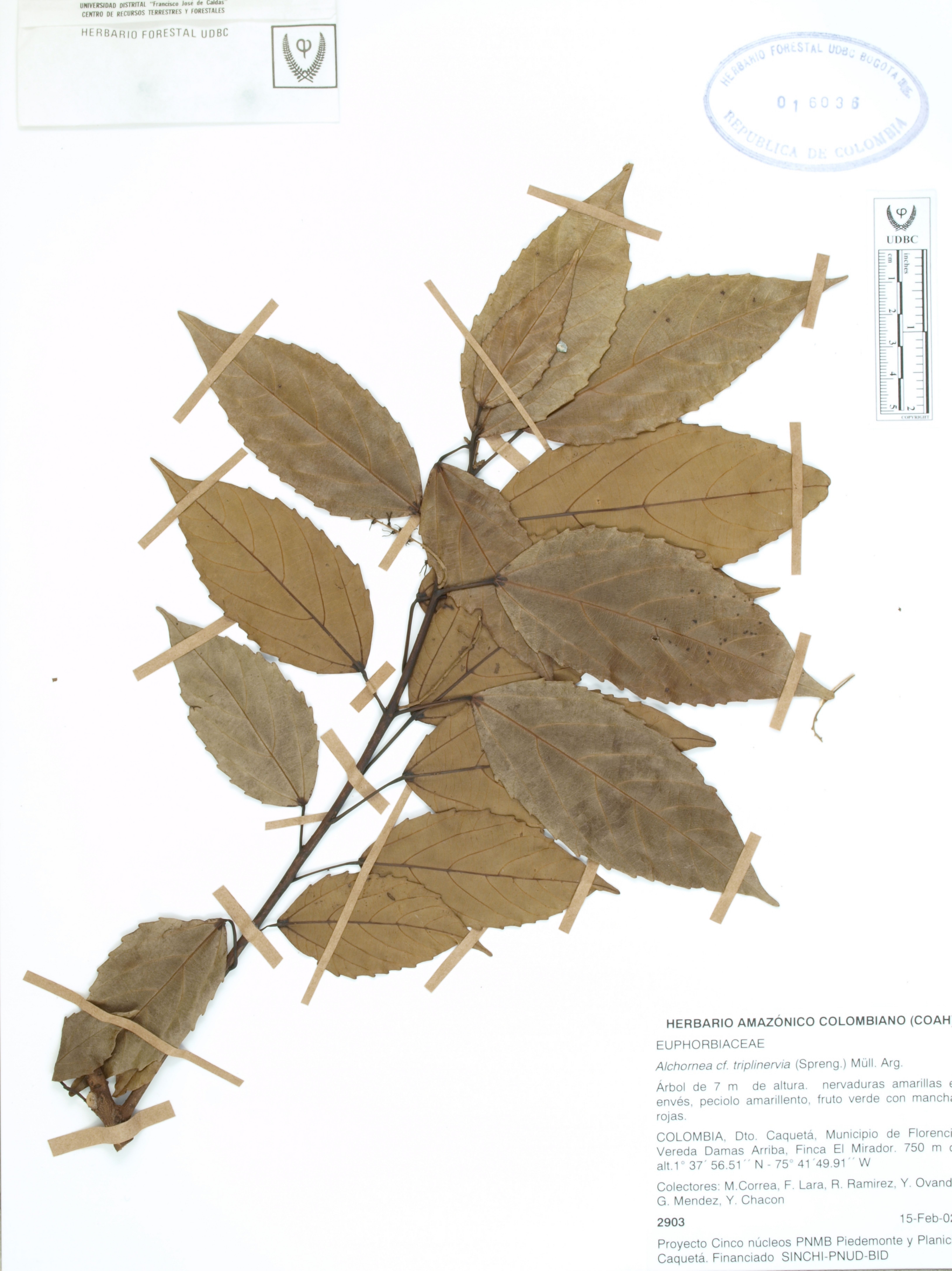 Fotografía del ejemplar Correa, M. 2903, determinado como Alchornea triplinervia