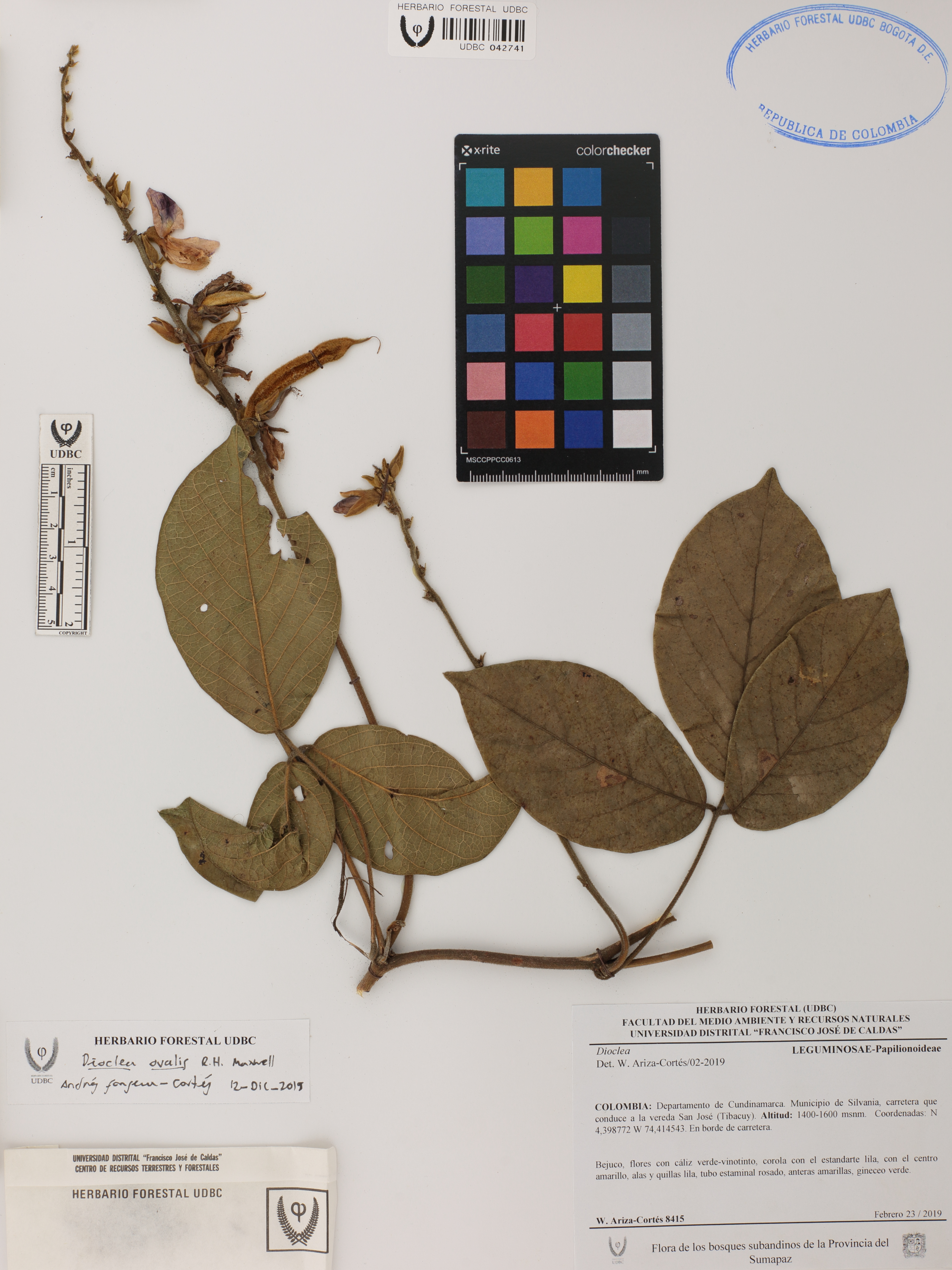 Fotografía del ejemplar Ariza-C., W. 8415, determinado como Dioclea ovalis en el año 2019