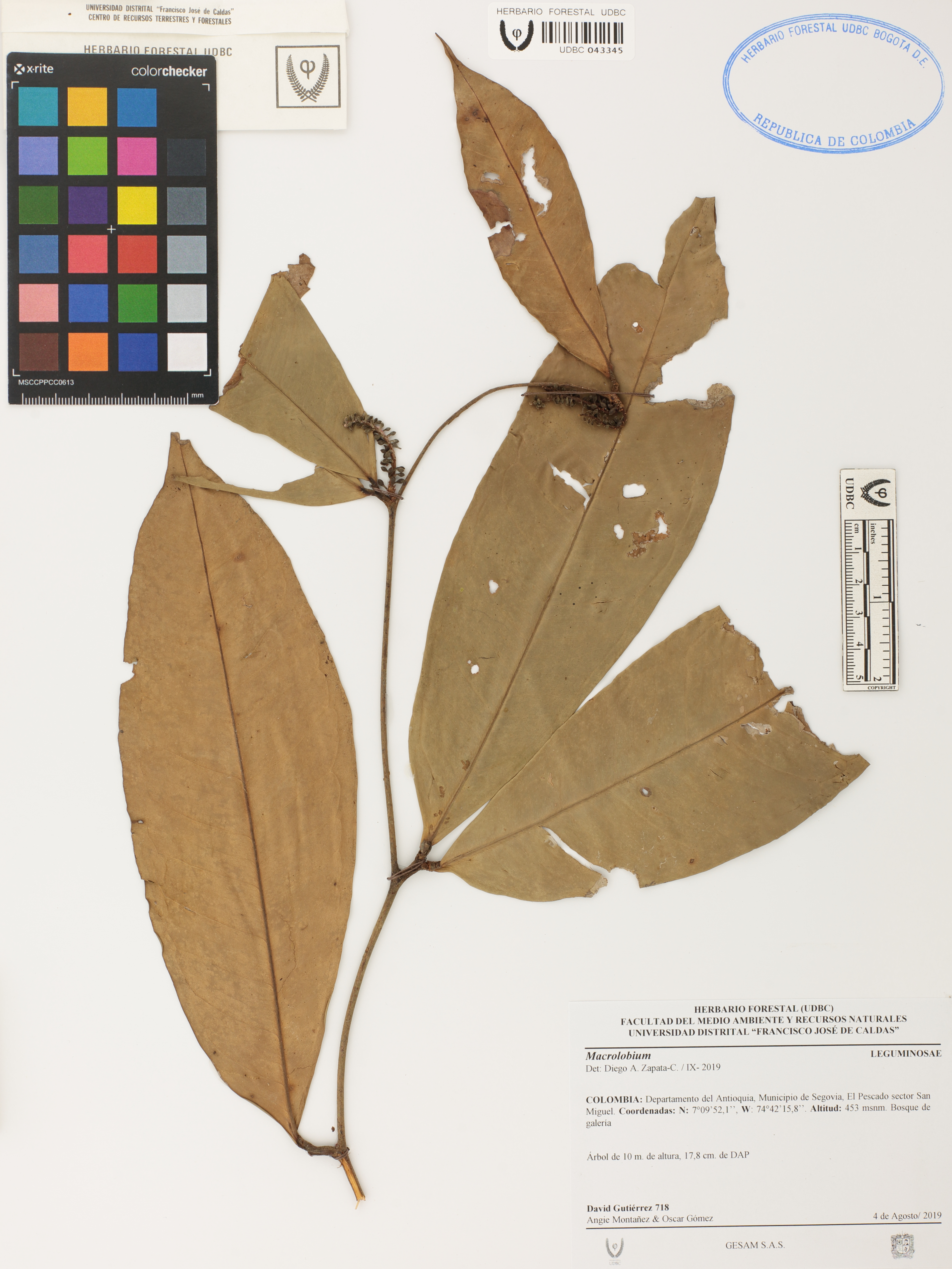 Fotografía del ejemplar Gutiérrez, D. 718, determinado como Macrolobium sp. en el año 2024