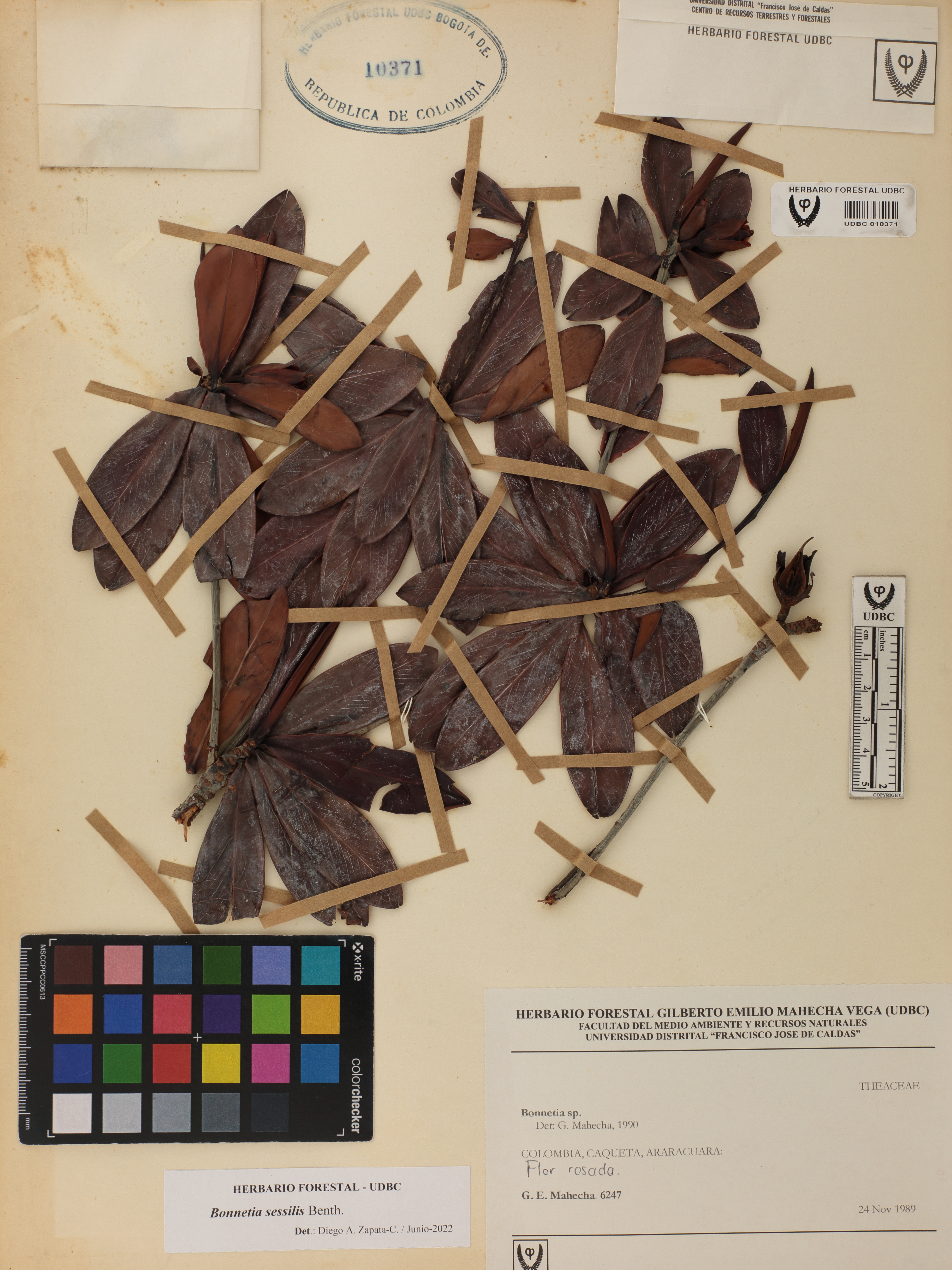 Fotografía del ejemplar Mahecha, G. 6247, determinado como Bonnetia sessilis en el año 2022