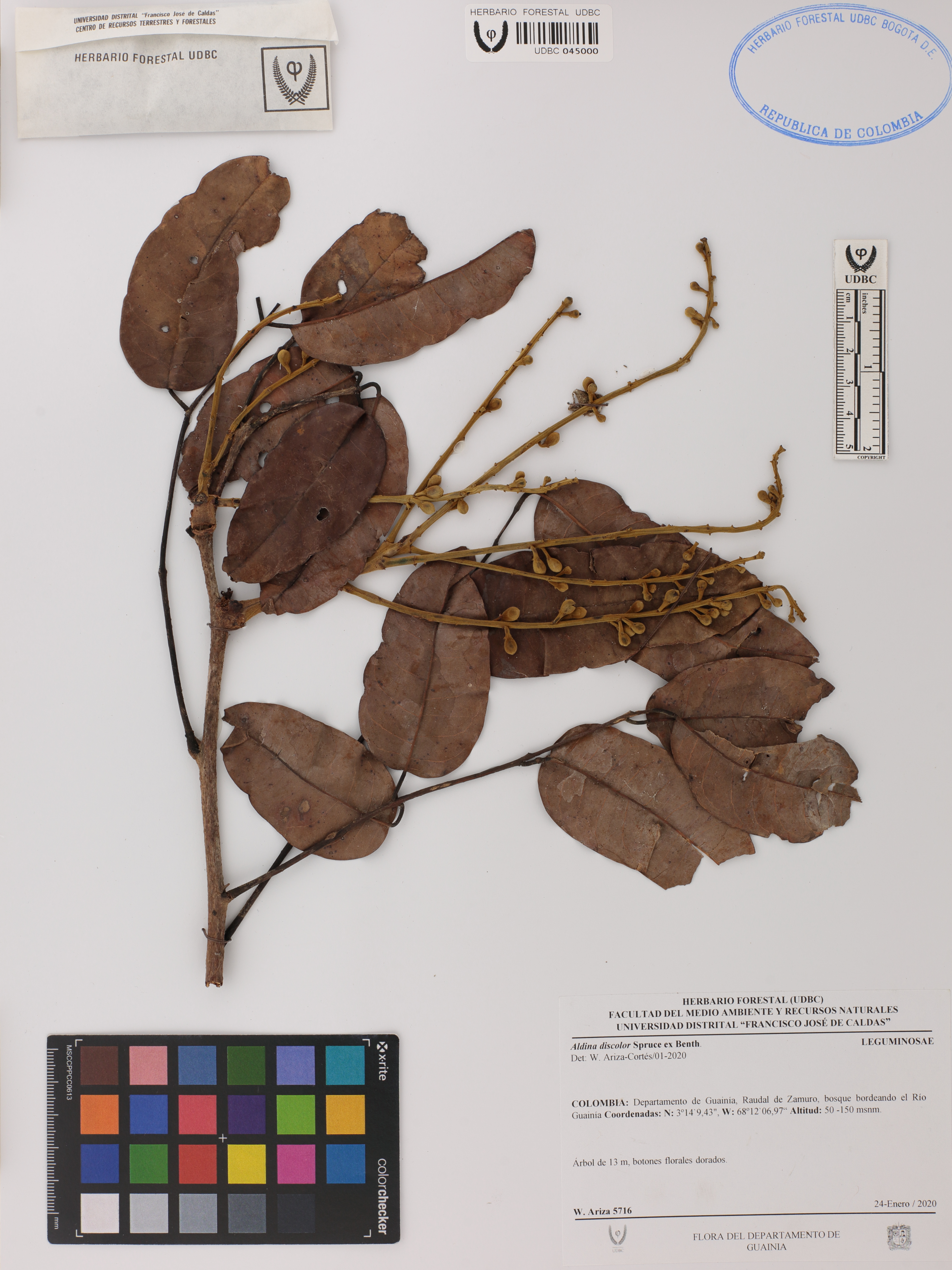 Fotografía del ejemplar Ariza-Cortés, W. 5716, determinado como Aldina discolor en el año 2020