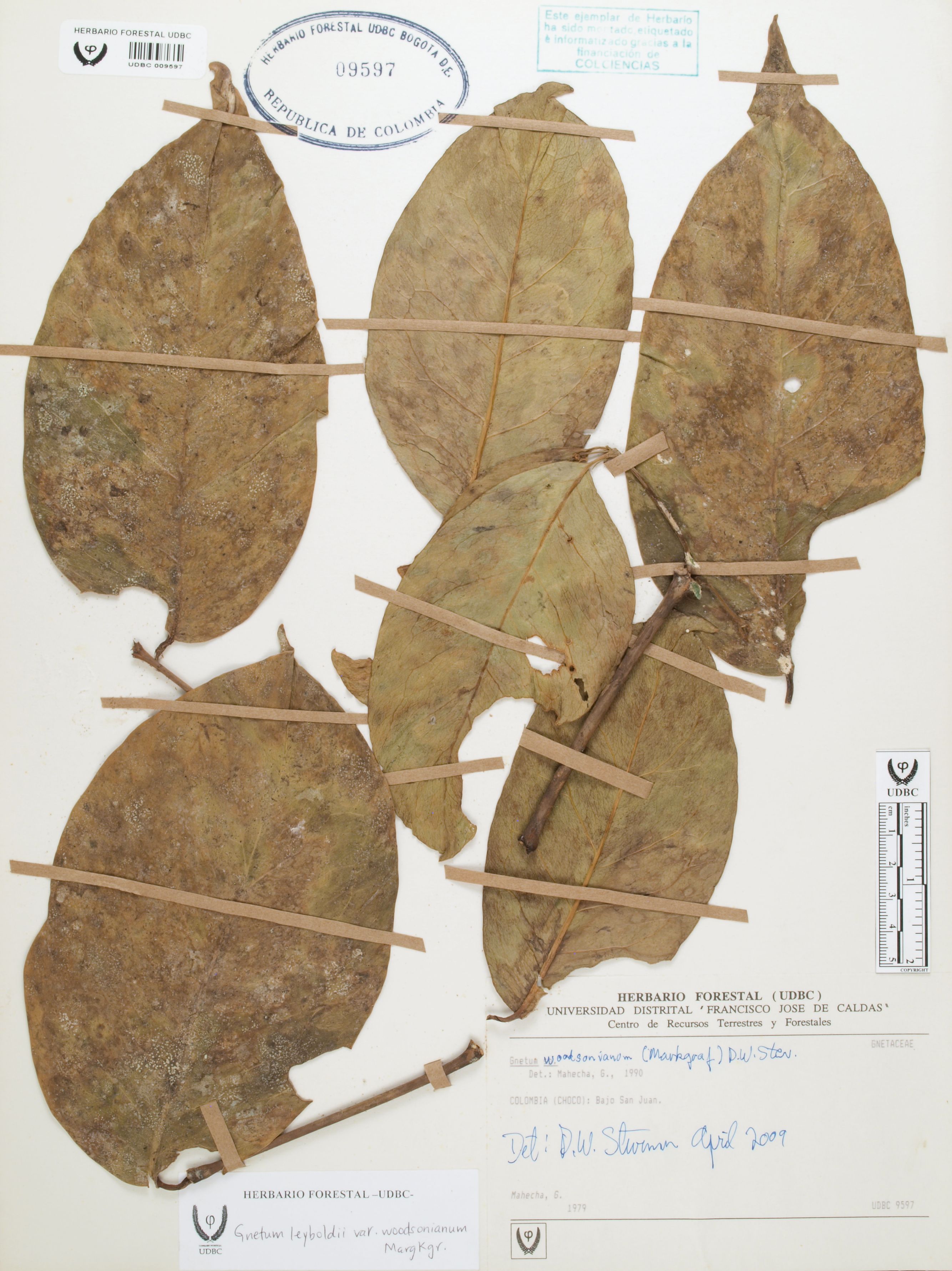 Fotografía del ejemplar Mahecha, G., determinado como Gnetum leyboldii var. woodsonianum