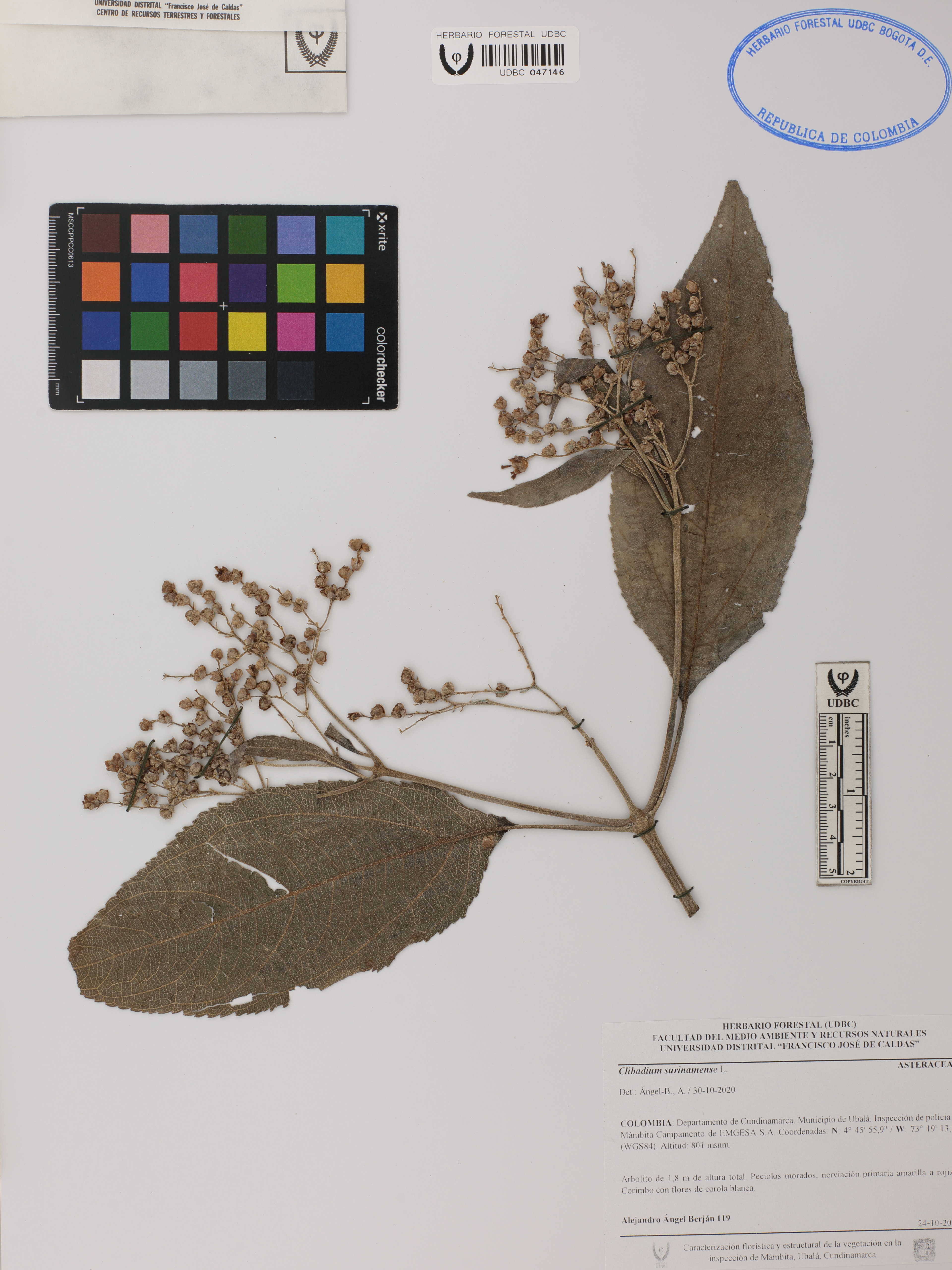 Fotografía del ejemplar Ángel-B., A. 119, determinado como Clibadium surinamense en el año 2020