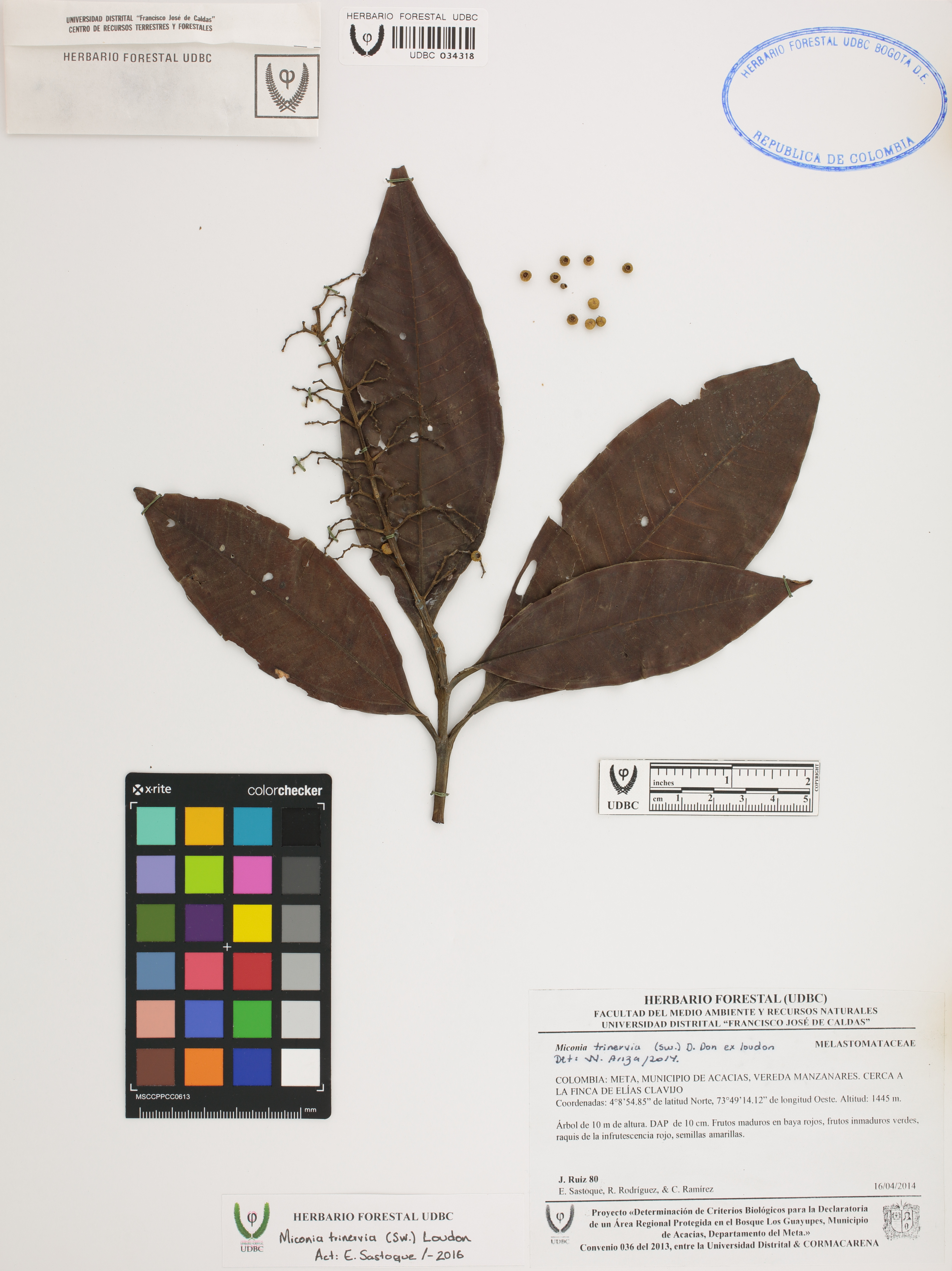 Fotografía del ejemplar Ruiz, J. 80, determinado como Miconia trinervia en el año 2016