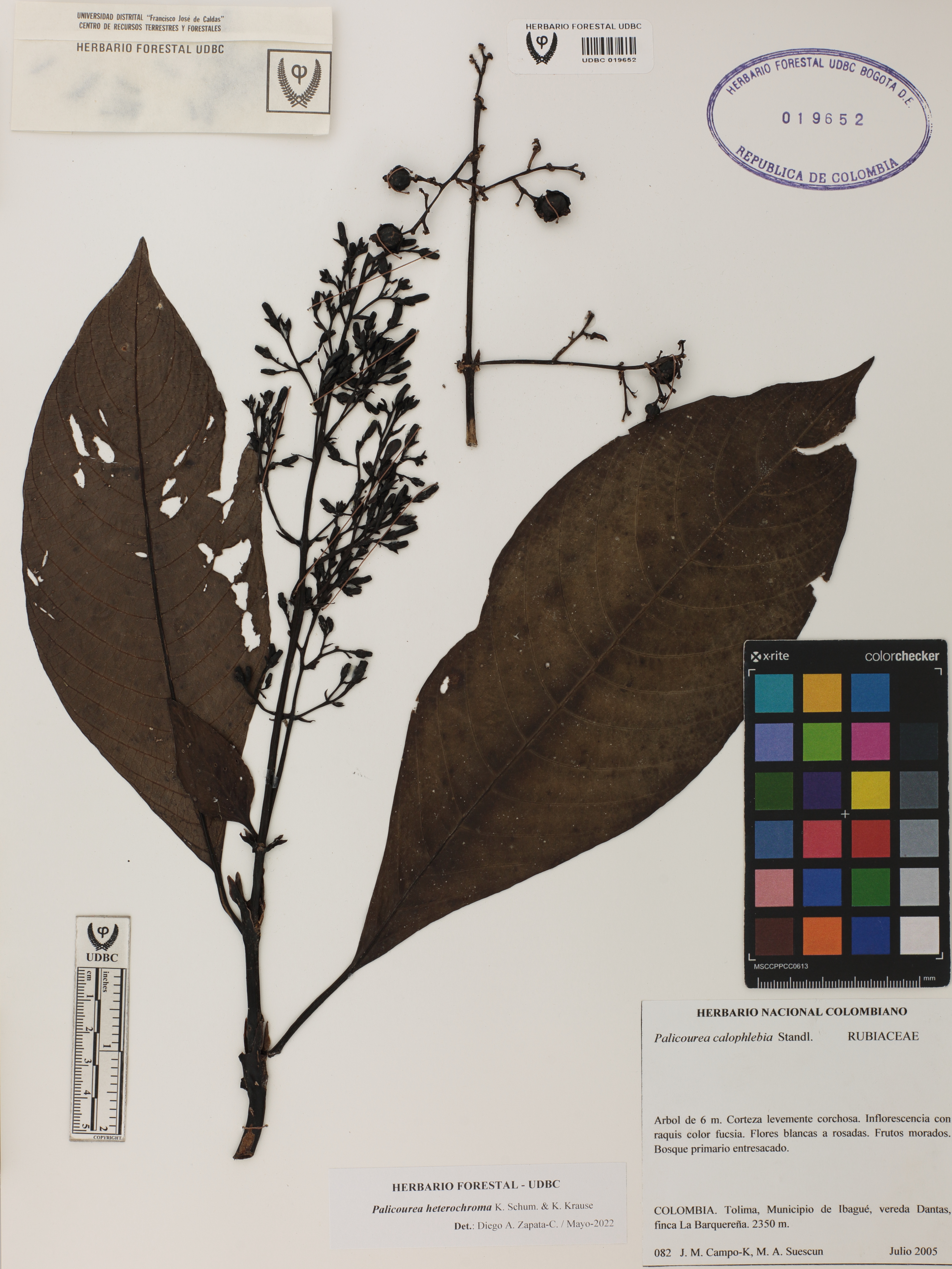 Fotografía del ejemplar Campo, J. 82, determinado como Palicourea heterochroma en el año 2022