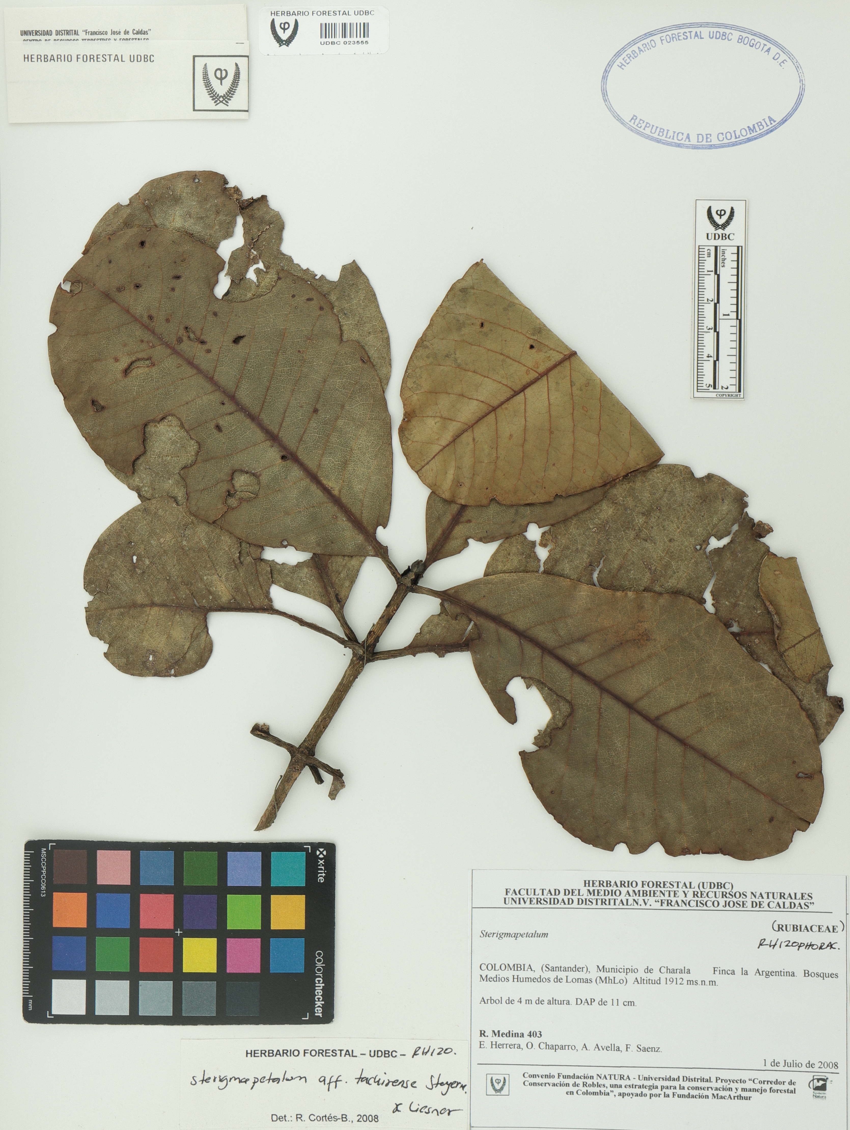 Fotografía del ejemplar Medina, R. 403, determinado como Sterigmapetalum tachirense en el año 2008