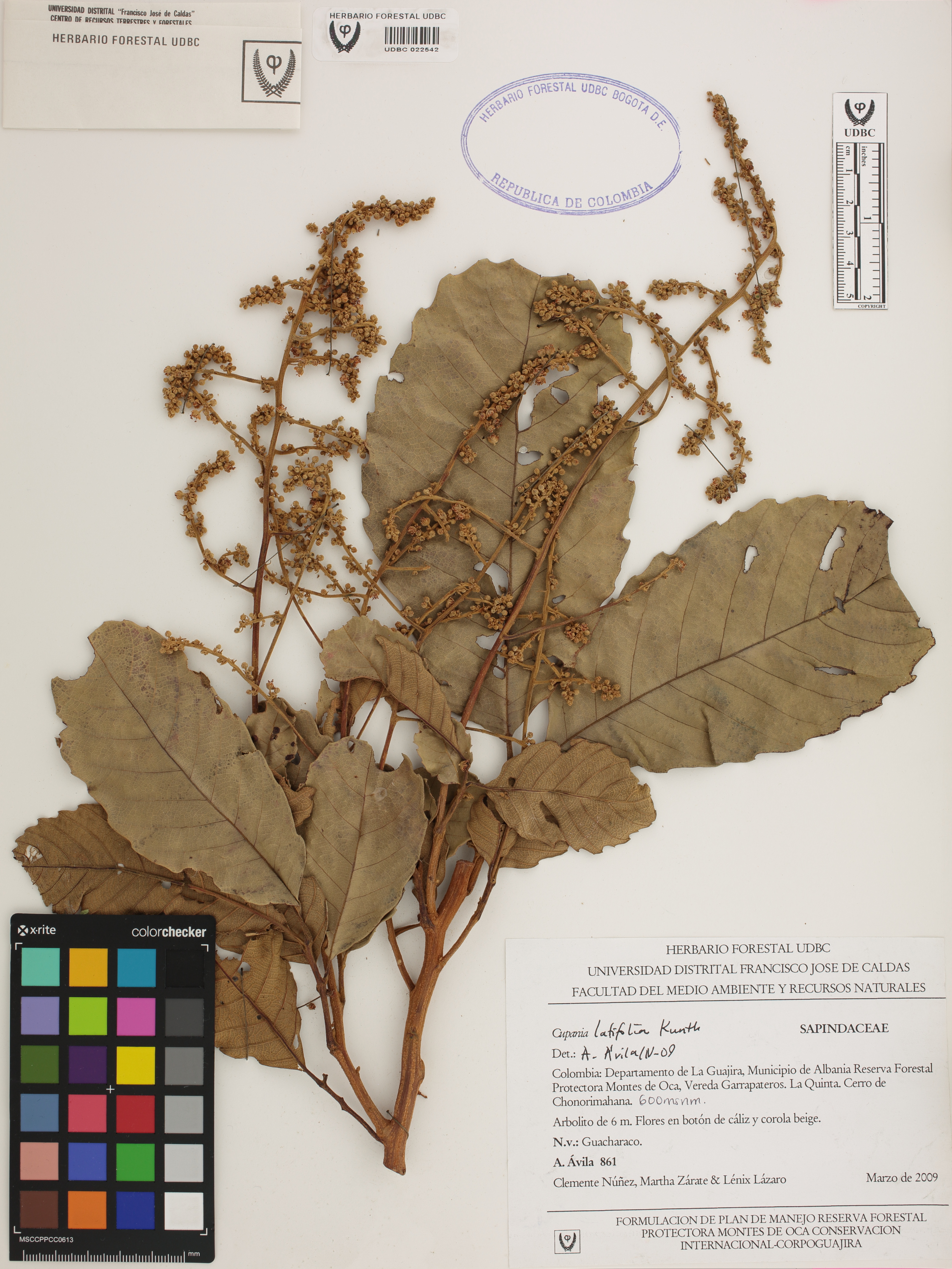 Fotografía del ejemplar Ávila, A. 861, determinado como Cupania latifolia en el año 2009