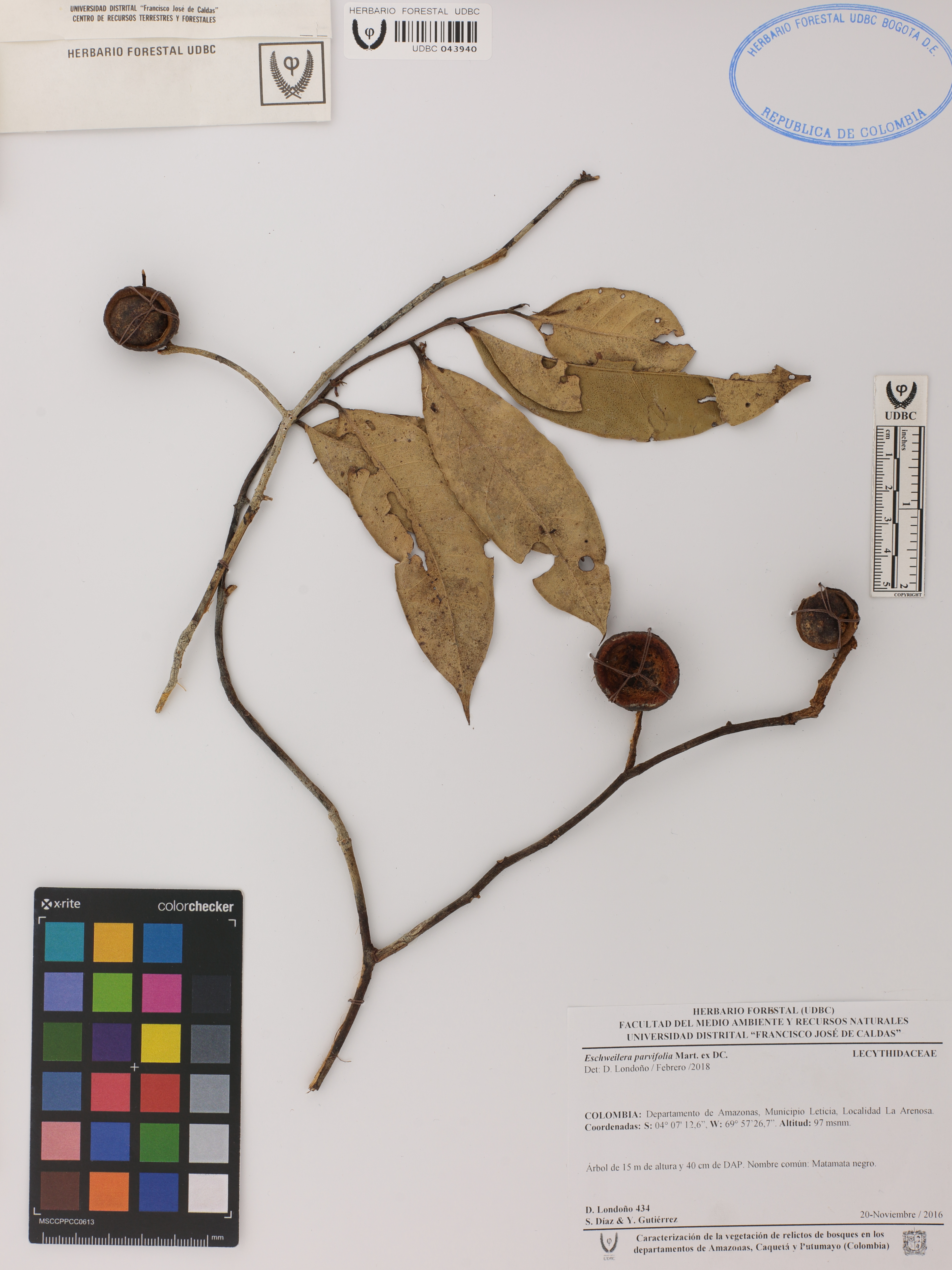Fotografía del ejemplar Londoño, D. 434, determinado como Eschweilera parvifolia en el año 2018