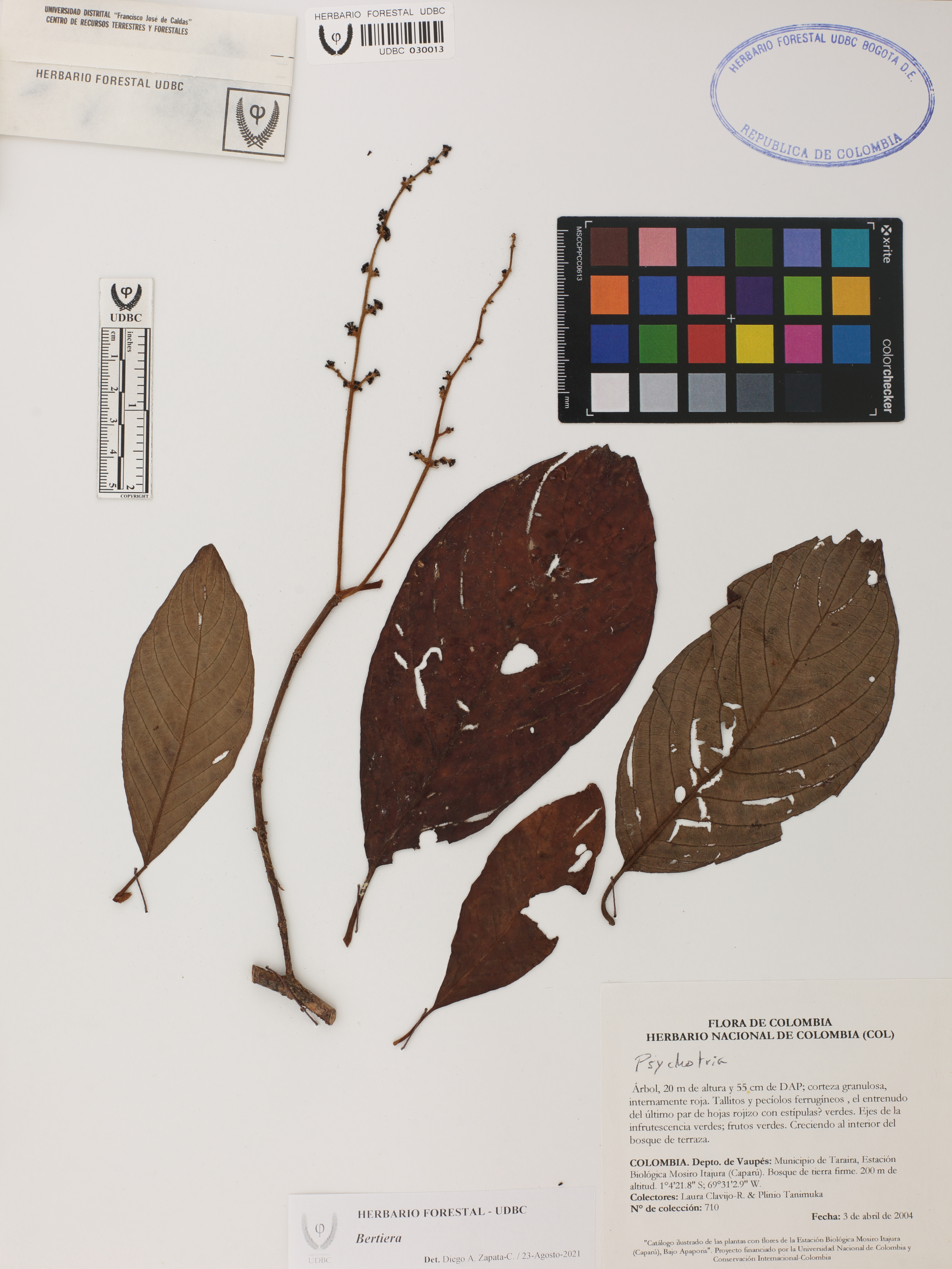 | dc.description | Fotografía del ejemplar Clavijo, L. 710, determinado como Bertiera sp. en el año 2021 | |