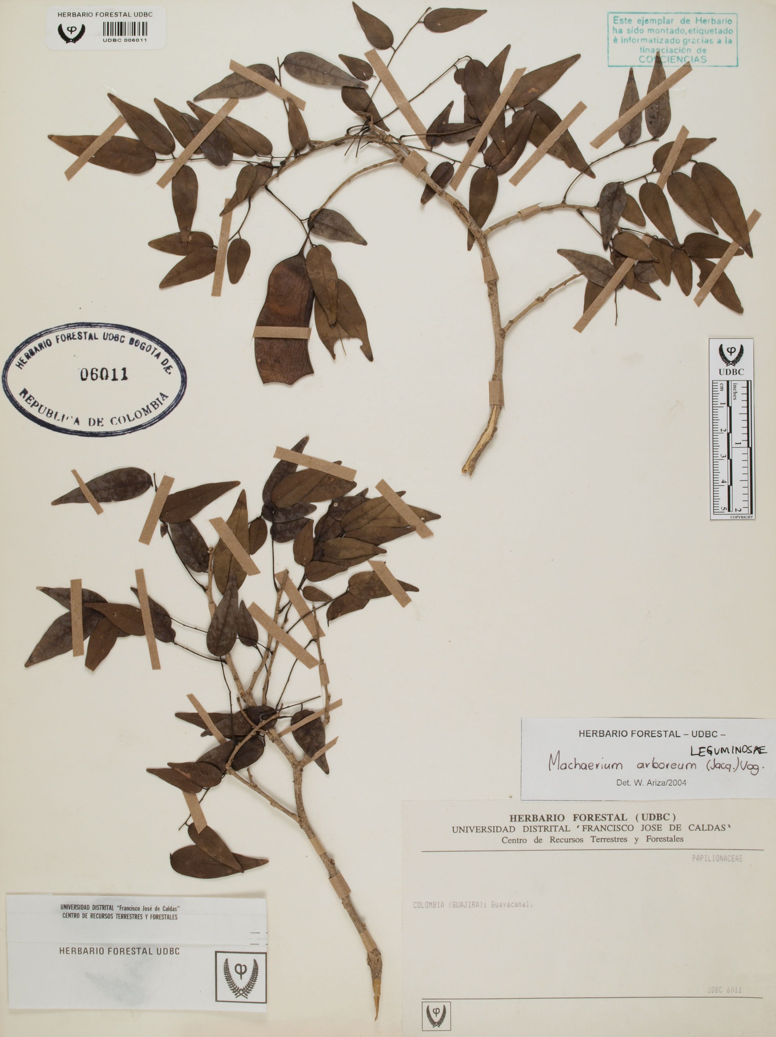 Fotografía del ejemplar SD, determinado como Machaerium arboreum en el año 2004