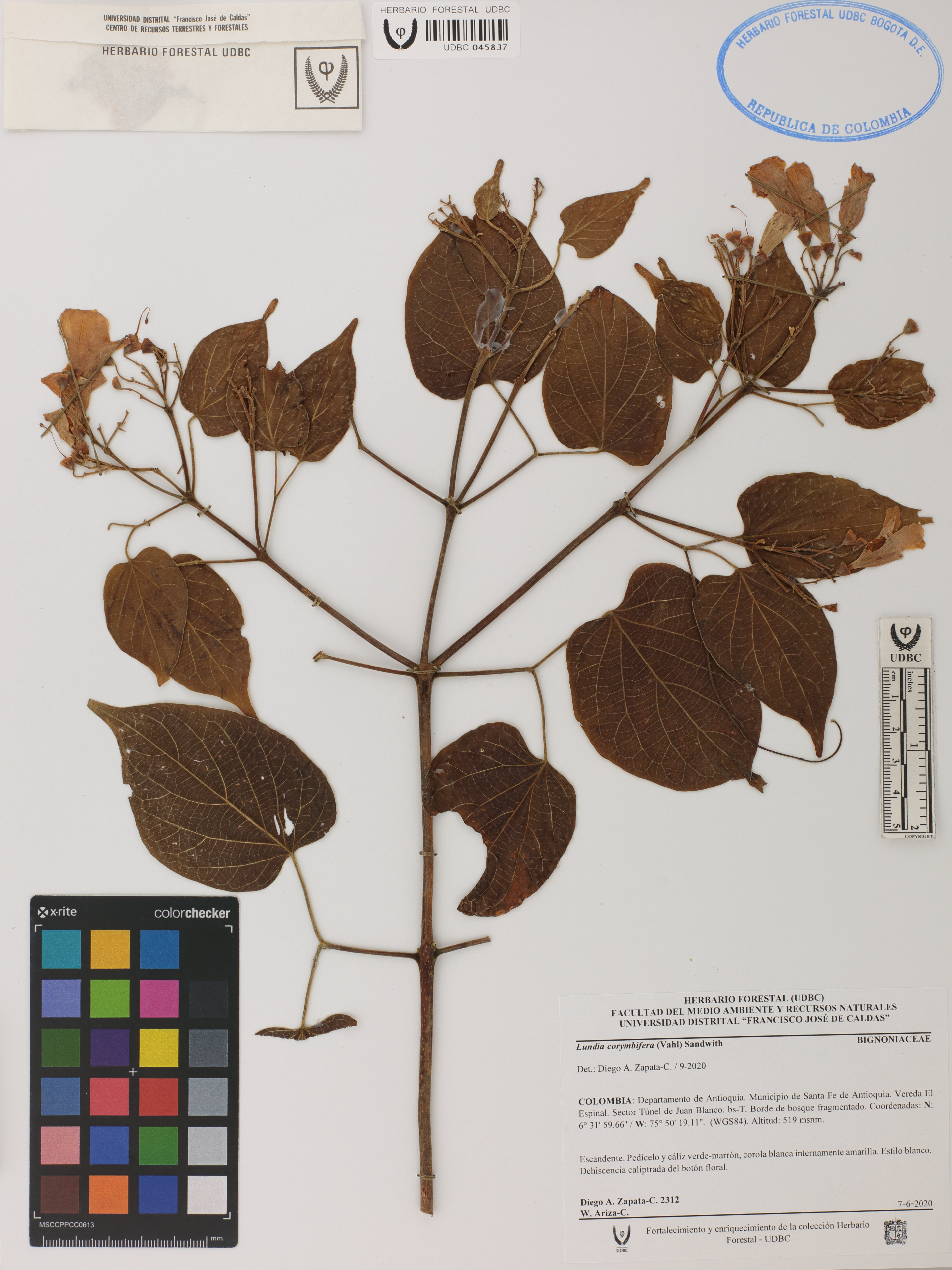 Fotografía del ejemplar Zapata-C., D. 2312, determinado como Lundia corymbifera en el año 2020