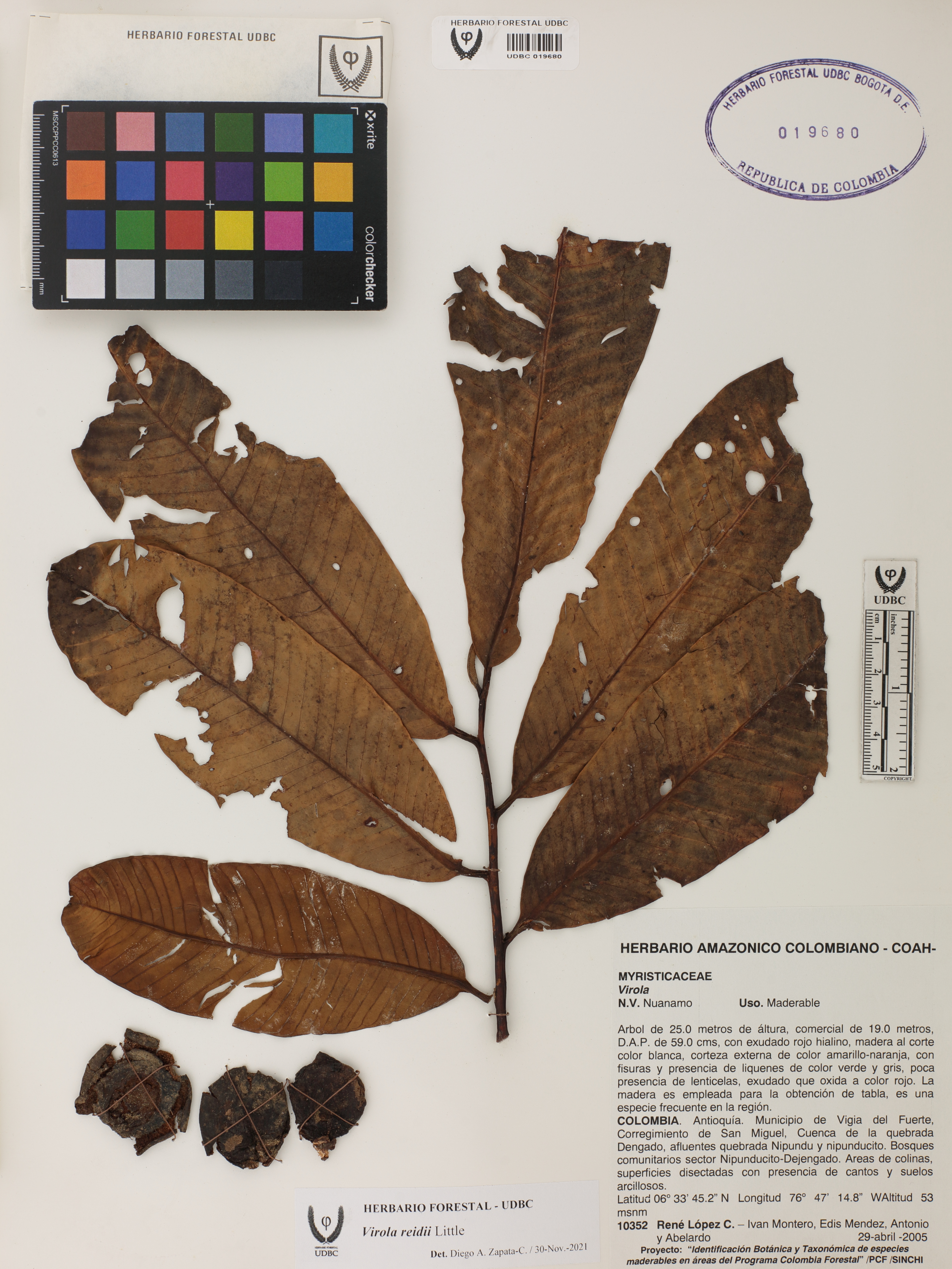 | dc.description | Fotografía del ejemplar López, R. 10352, determinado como Virola reidii en el año 2021 | |