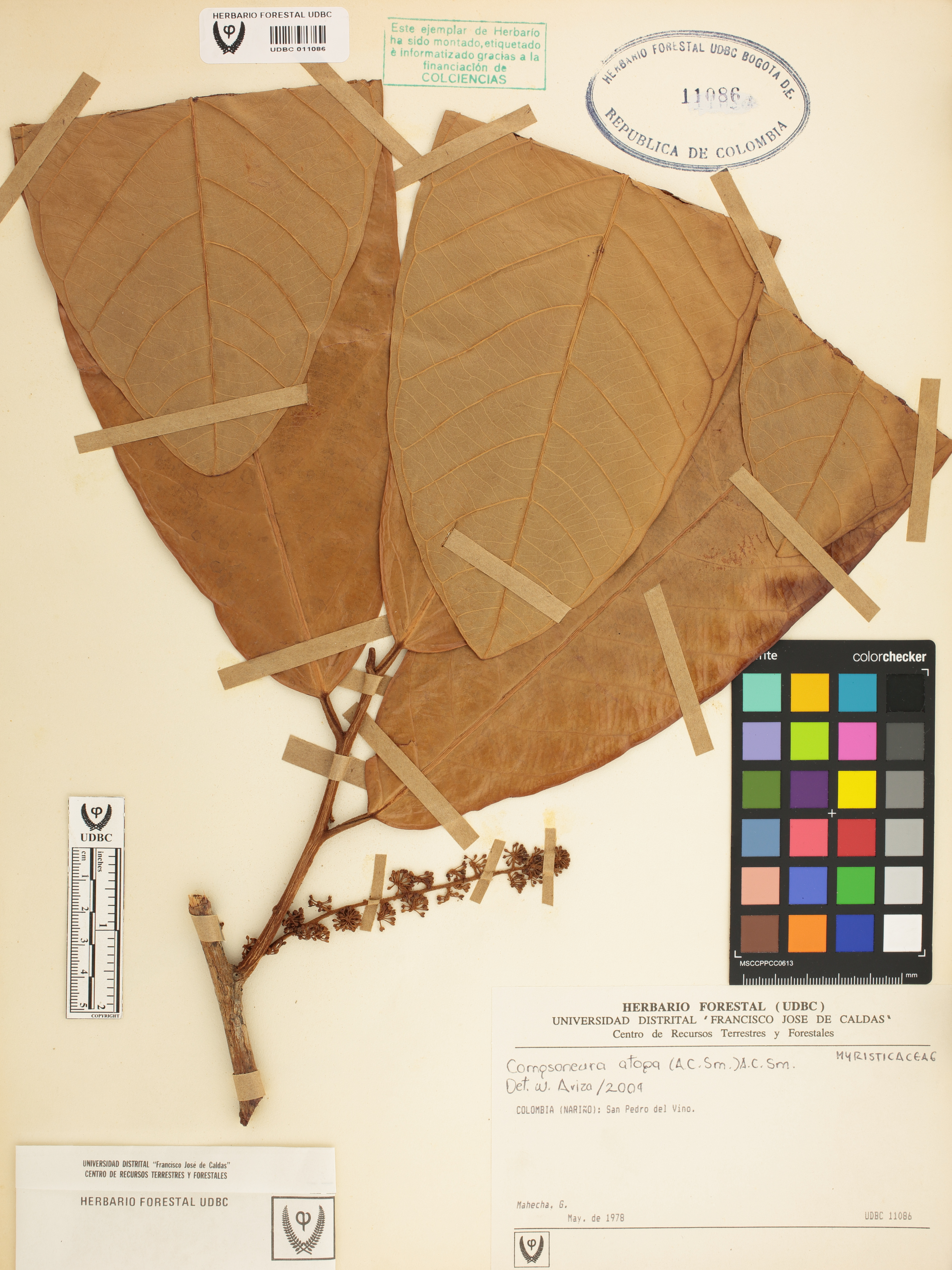 Fotografía del ejemplar Mahecha, G., determinado como Compsoneura atopa en el año 2004