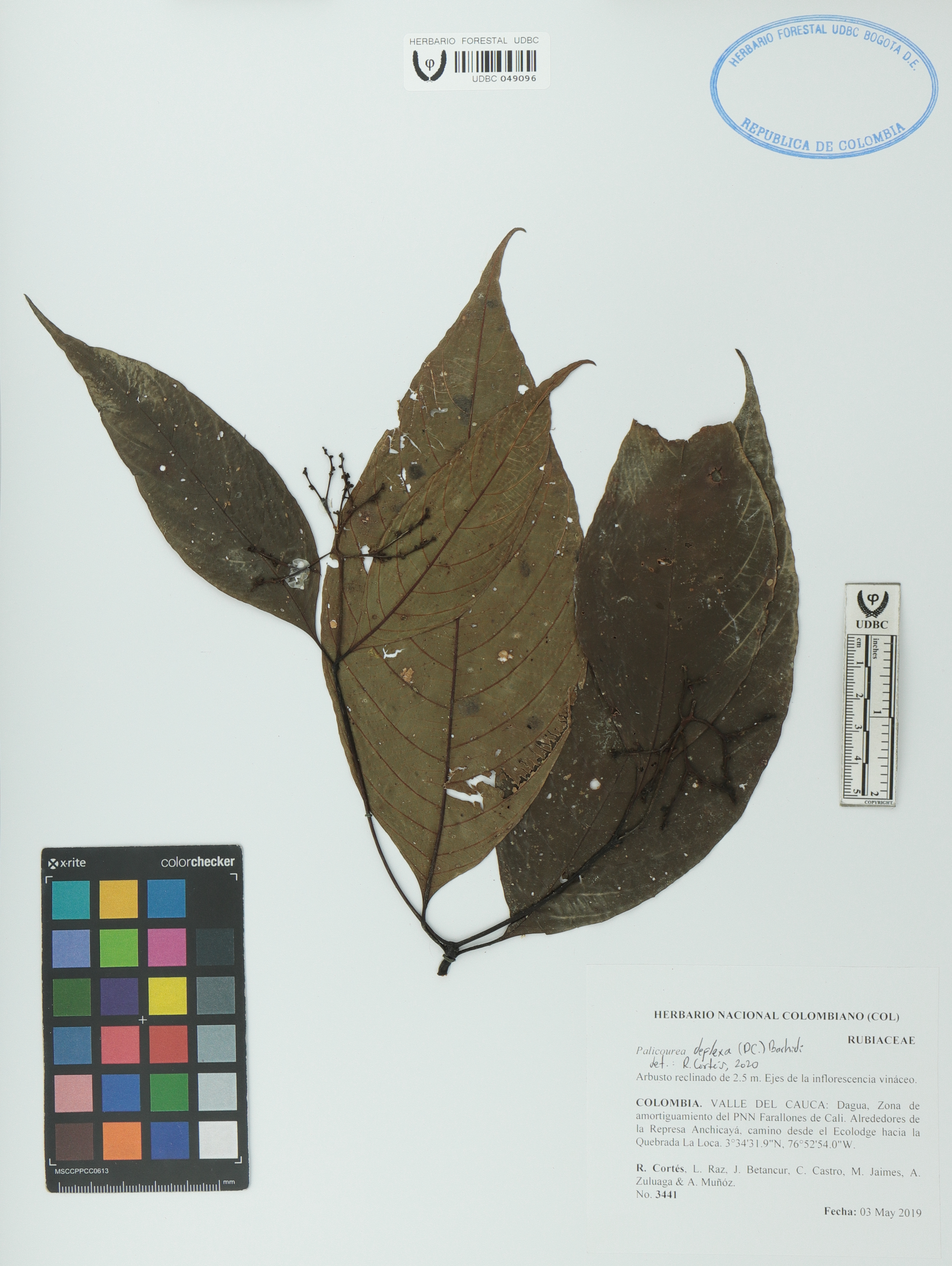 Fotografía del ejemplar Cortés, R. 3441, determinado como Palicourea sp.