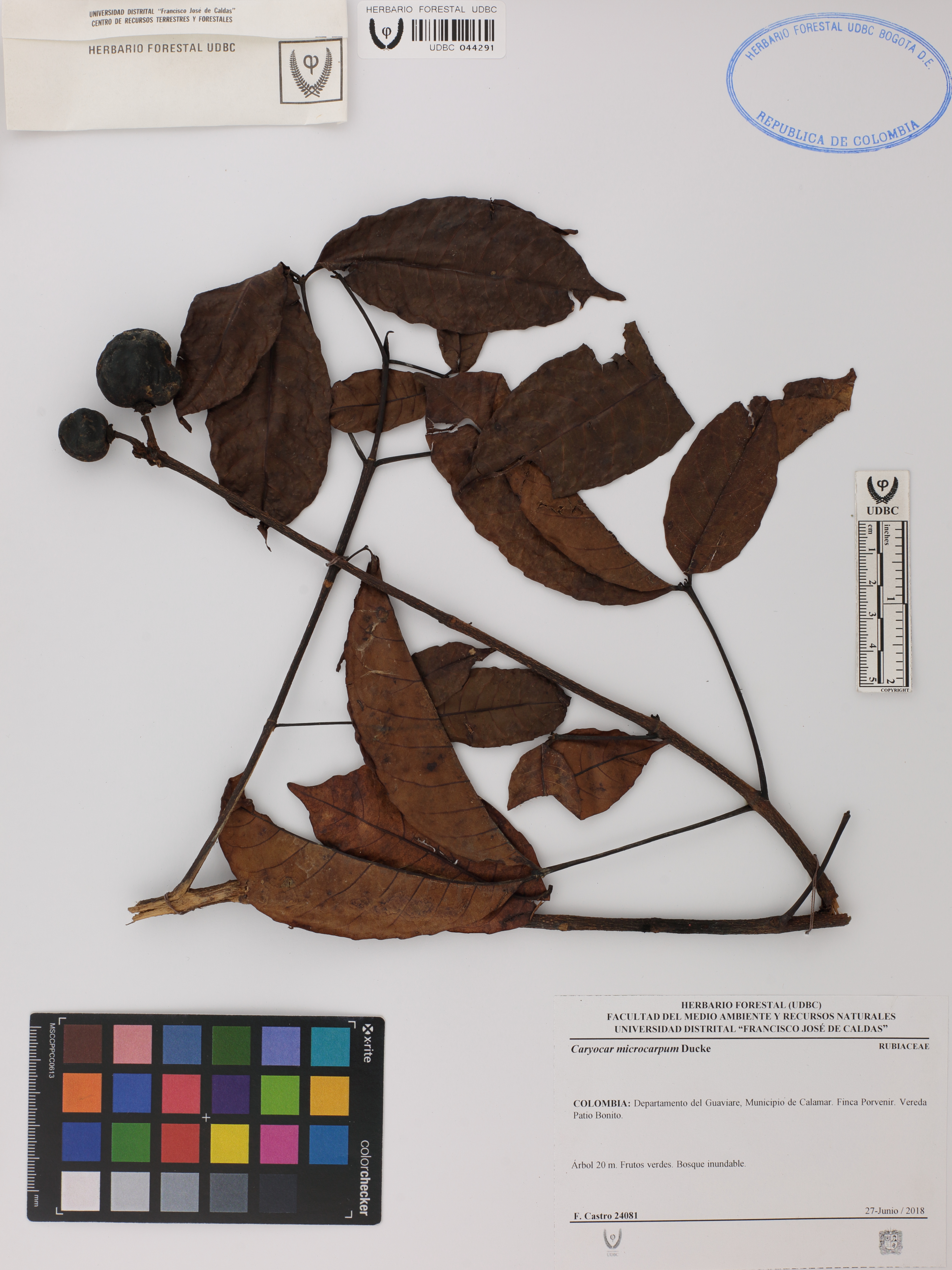 Fotografía del ejemplar Castro, F. 24081, determinado como Caryocar microcarpum en el año 2018