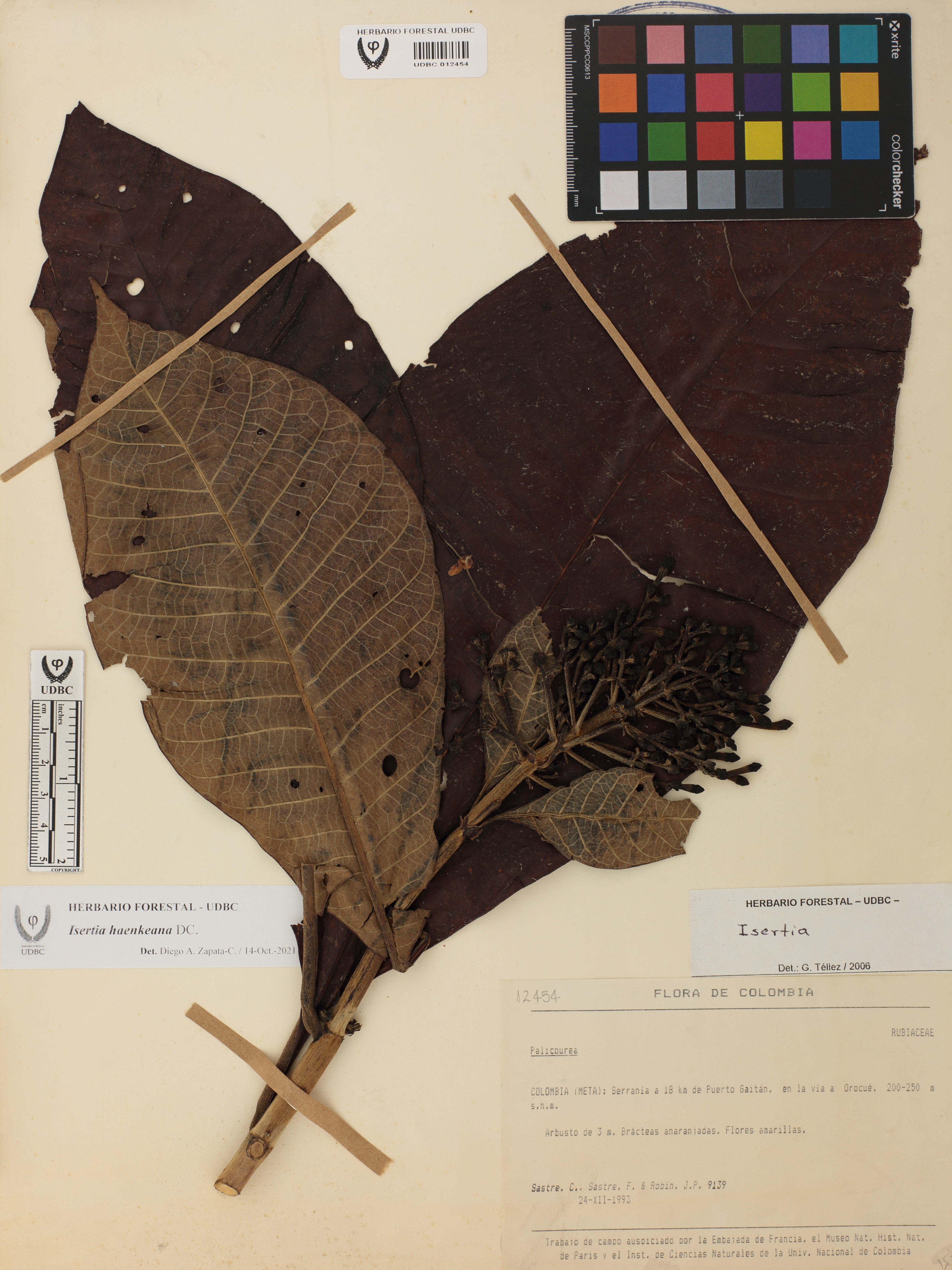 Fotografía del ejemplar Sastre, C. 9139, determinado como Isertia haenkeana en el año 2021