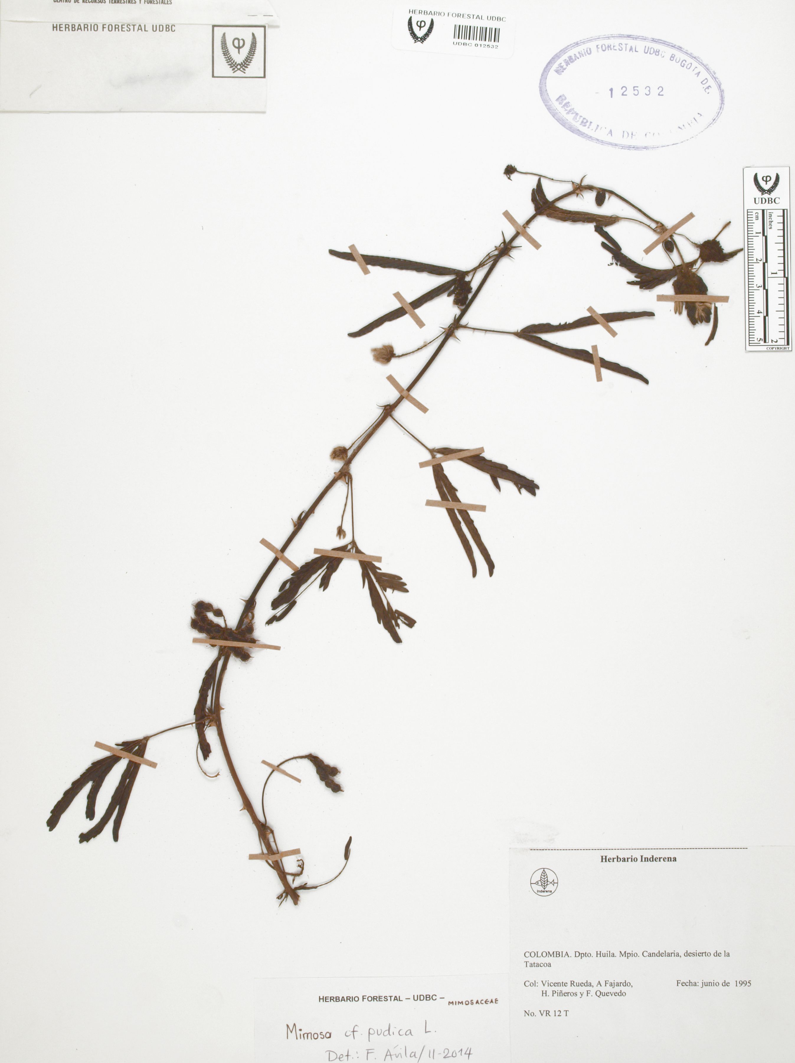 Fotografía del ejemplar Rueda, F. 12, determinado como Mimosa pudica en el año 2014