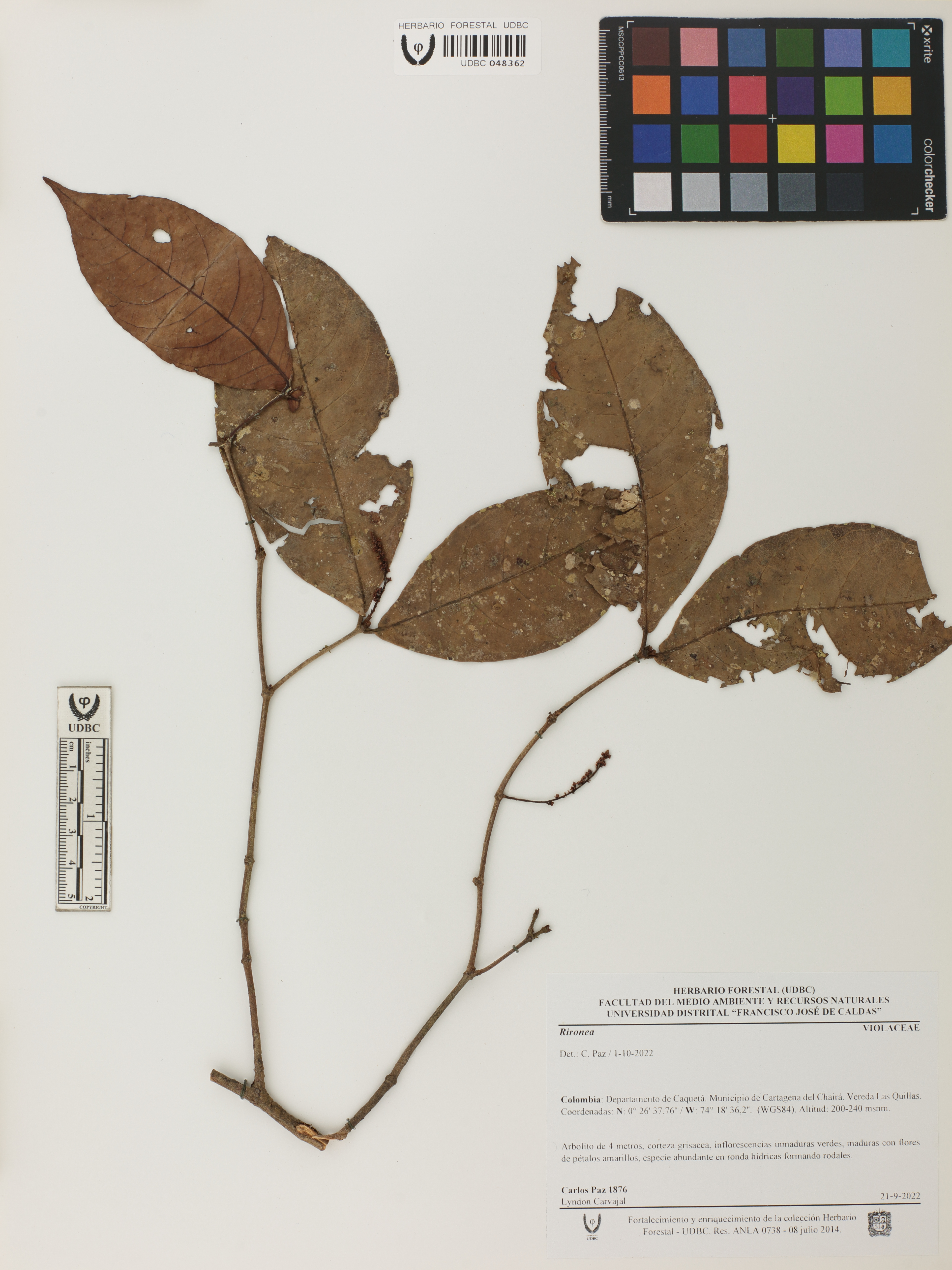 Fotografía del ejemplar Paz, Carlos A. 1876, determinado como Rinorea sp. en el año 2022