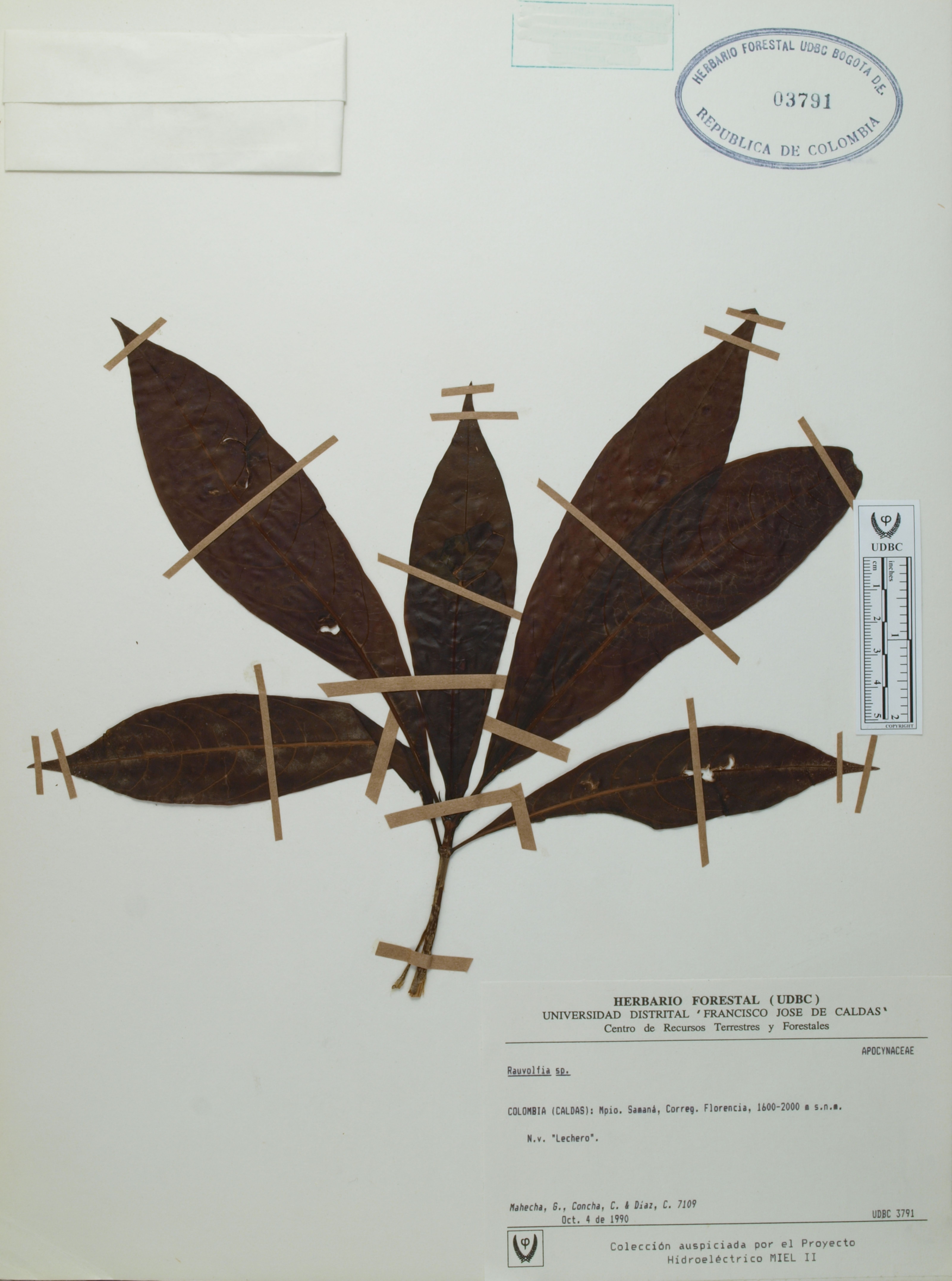 Fotografía del ejemplar Mahecha, G. 7109, determinado como Rauvolfia sp.