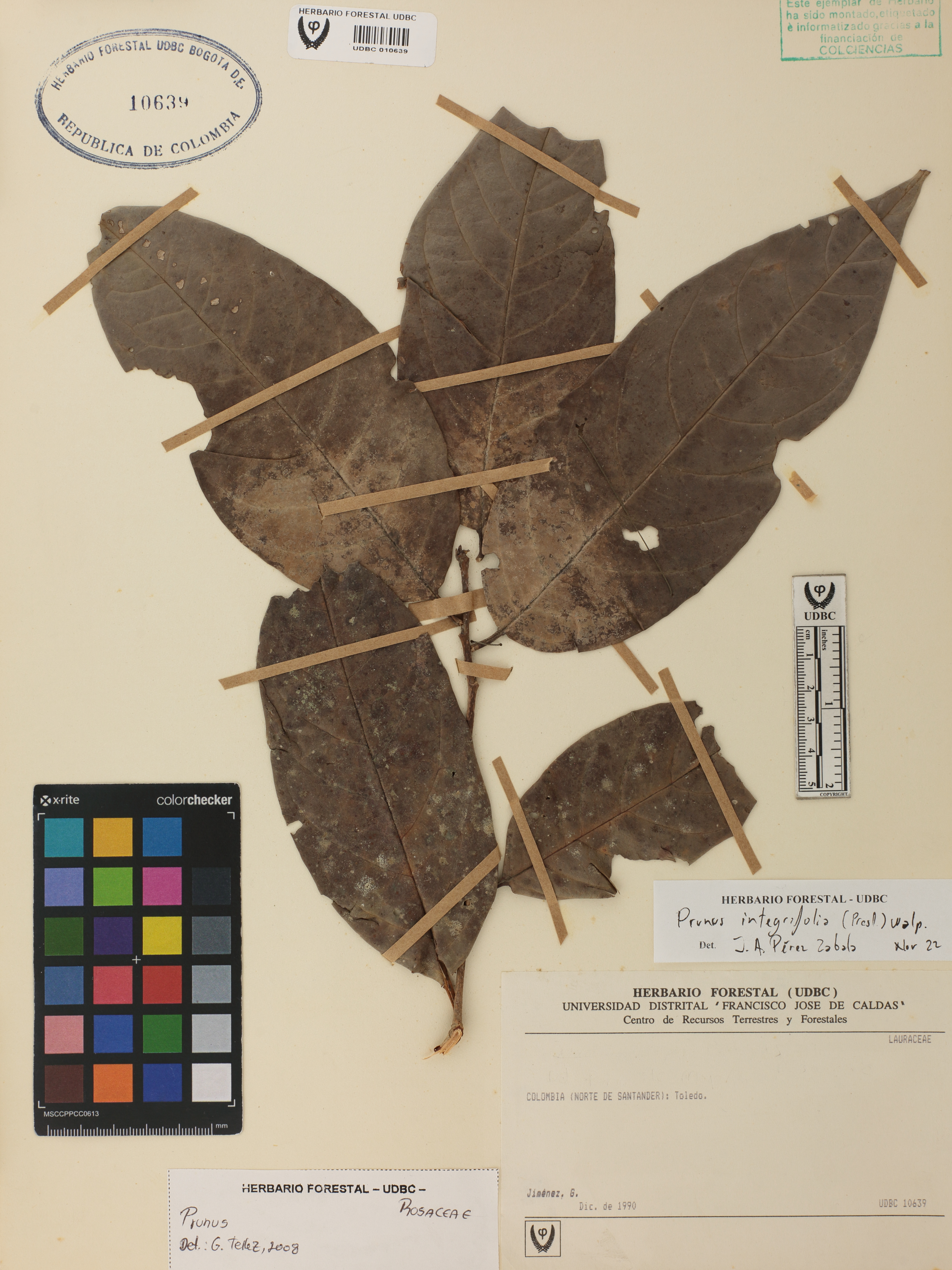 Fotografía del ejemplar Jiménez, G., determinado como Prunus integrifolia en el año 2022