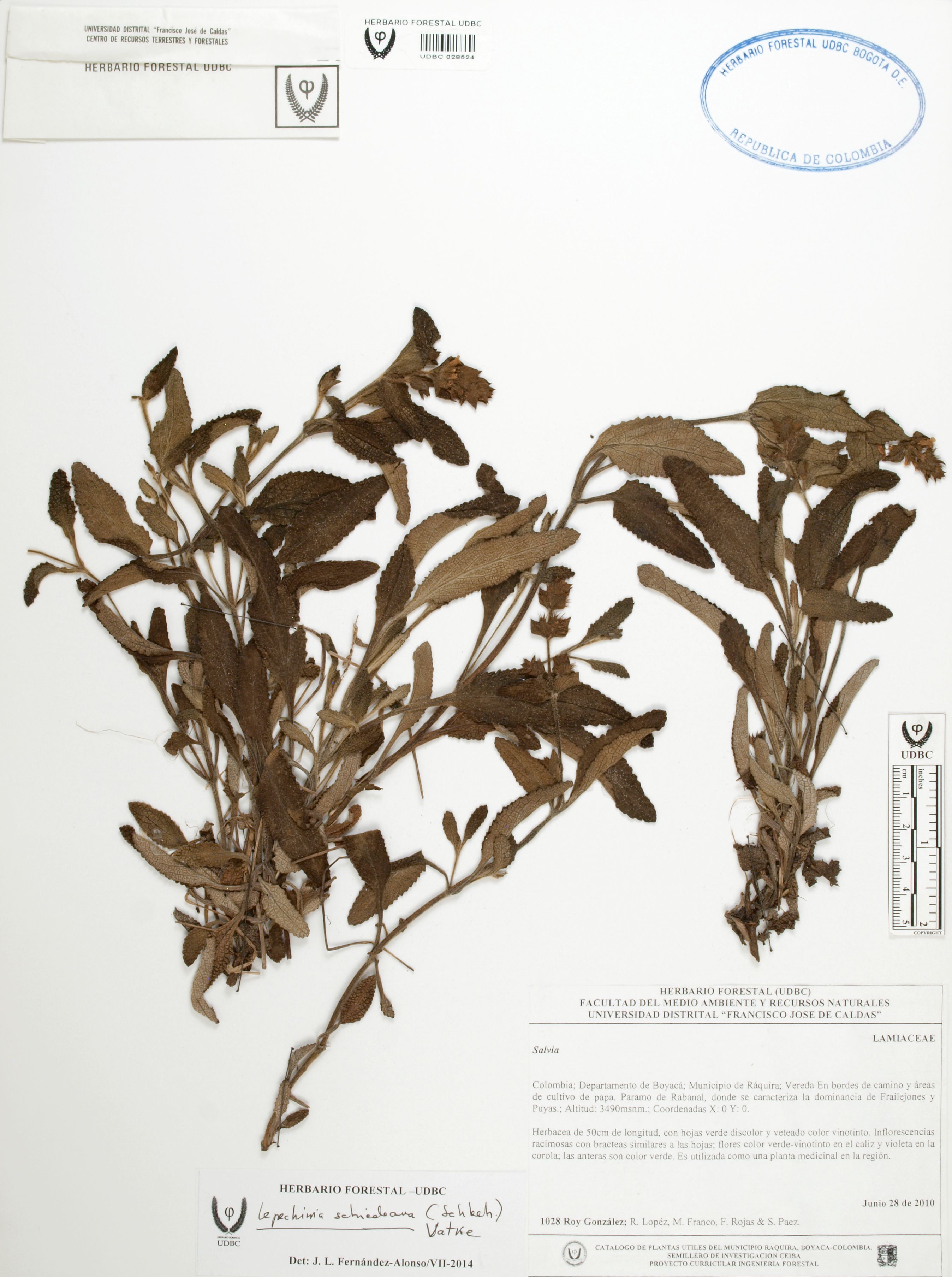 Fotografía del ejemplar González, R. 1028, determinado como Lepechinia schiedeana en el año 2014