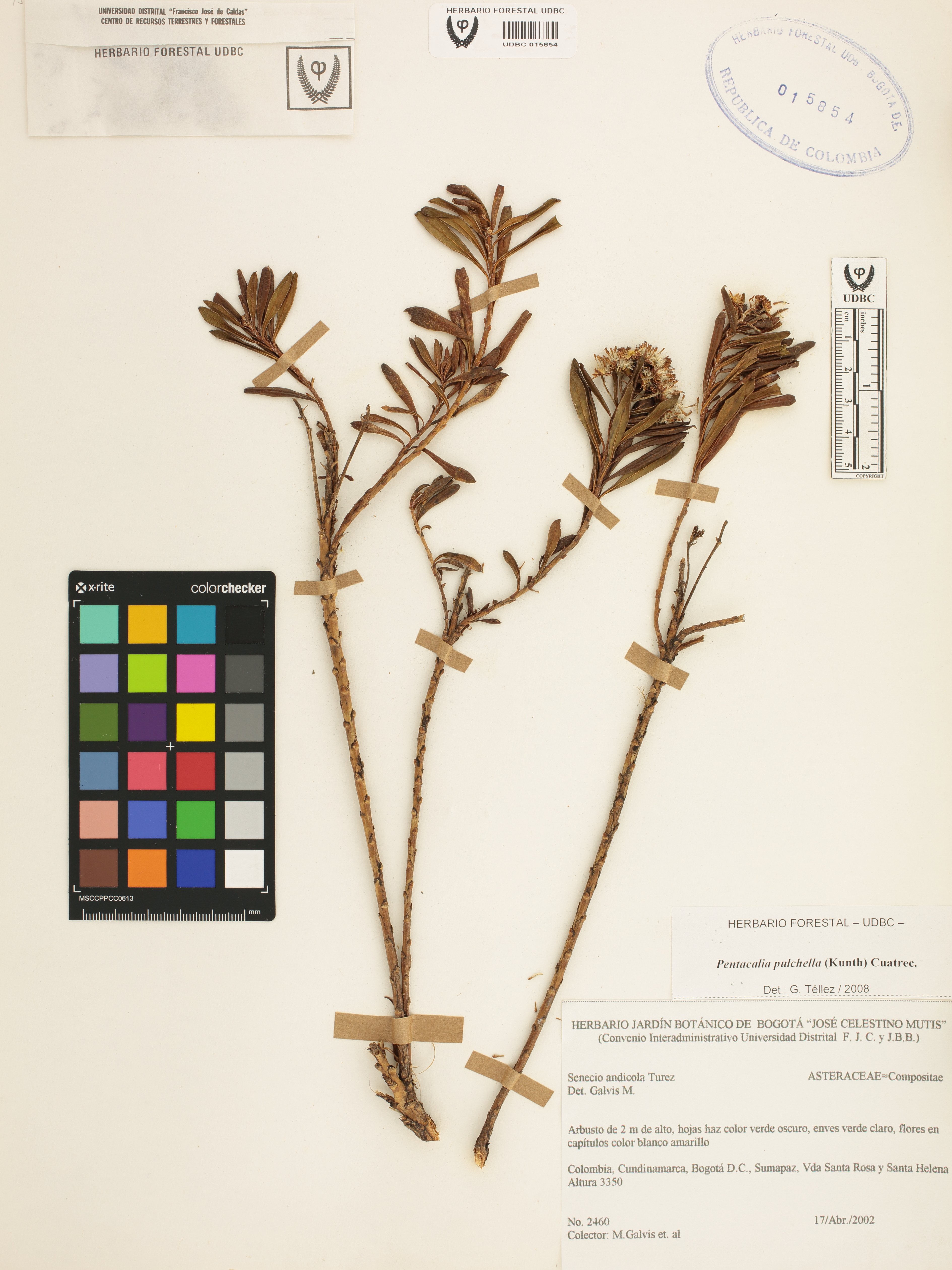 Fotografía del ejemplar Galvis, M. 2460, determinado como Pentacalia pulchella en el año 2008